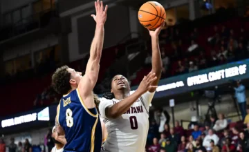 Coming off a 43-13 win over Utah Tech and leading up to a night game against two-time reigning Division II national champion Ferris State in Missoula, Montana head coach Bobby Hauck, junior right tackle Brandon Casey (left) and senior captain defensive back Trajon Cotton addressed the media.