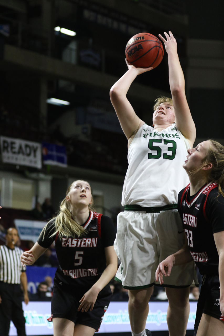 Eastern freshman Kennedy Dickie scored 10 points in the first half, then hit a pair of triples in the fourth quarter, including a 3-pointer with 3:41 left to cut the lead to 73-68 before the Vikings finally pulled away for good.