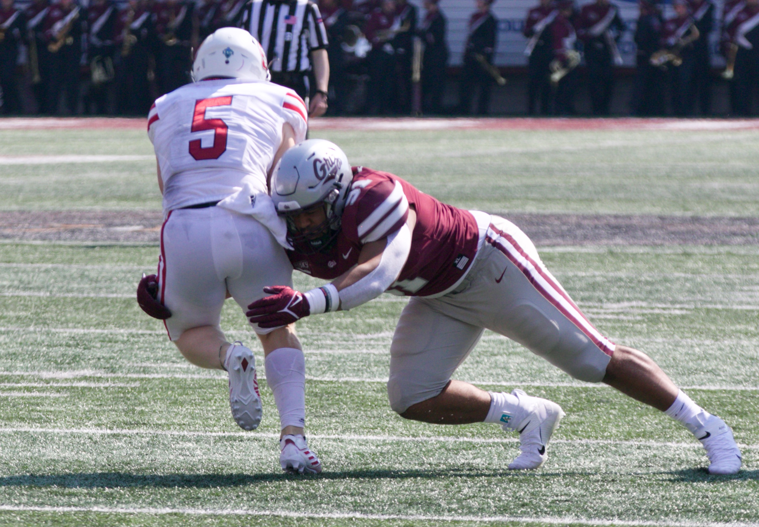 Montana sophomore linebacker Ryan Tirrell brings pressure/ by Brooks Nuanez