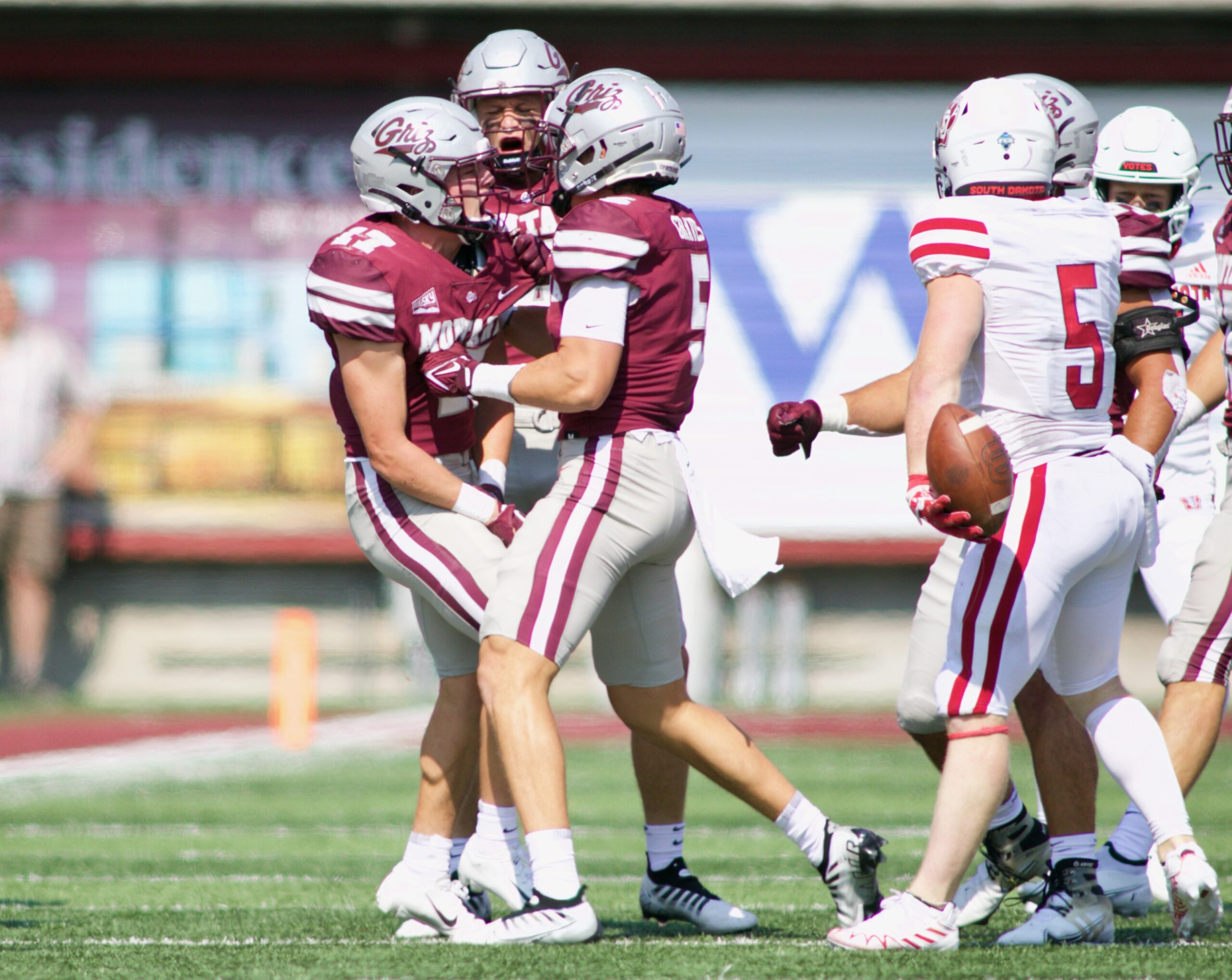 Montana senior linebacker Marcus Welnel and senior cornerback Jayden Dawson celebrate/ by Brooks Nuanez
