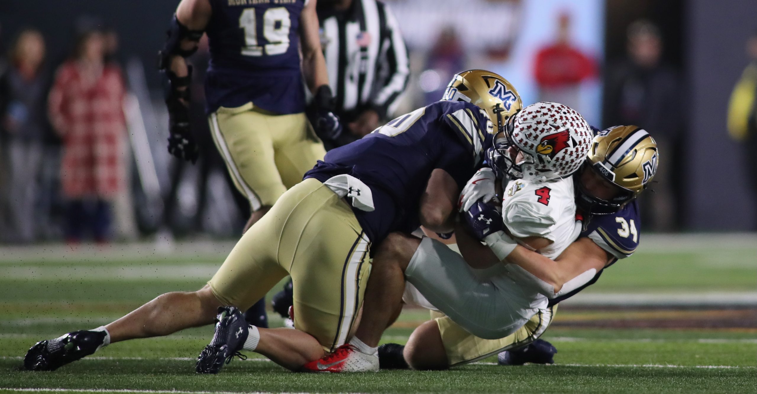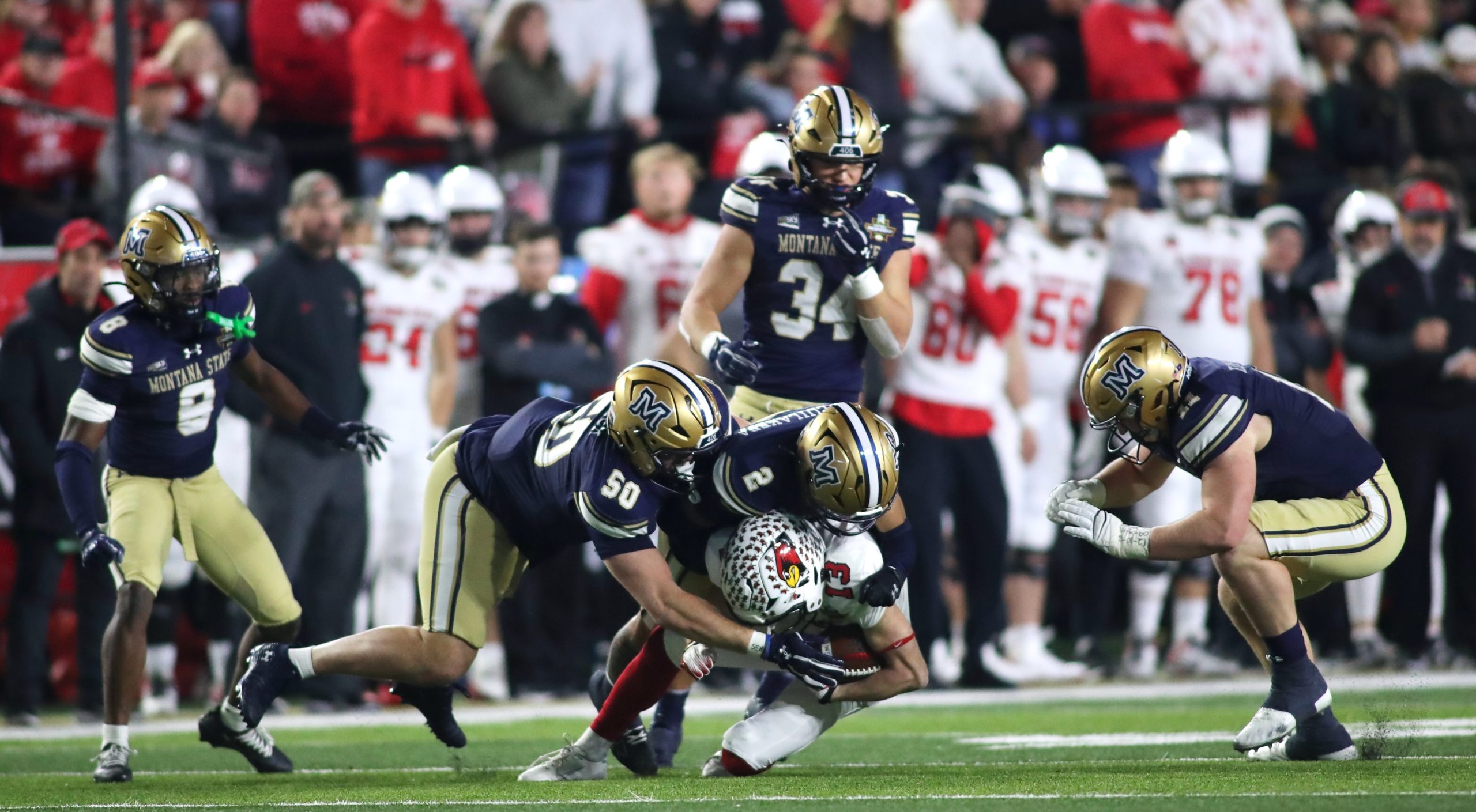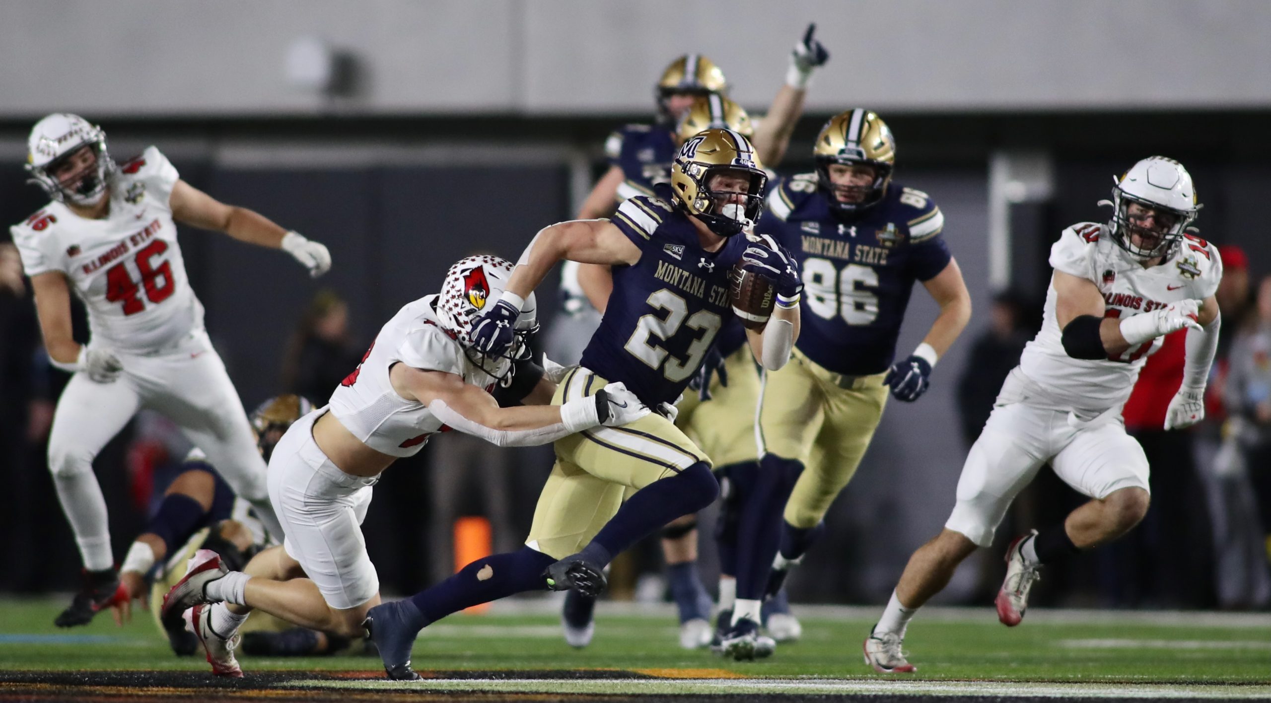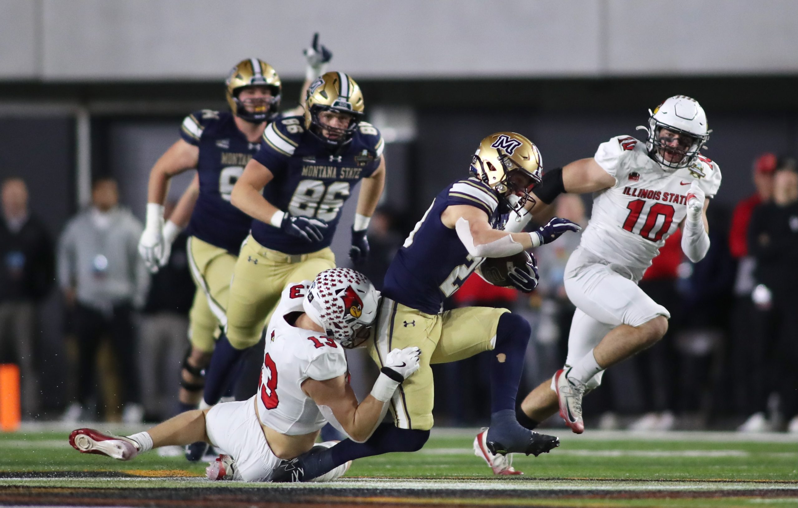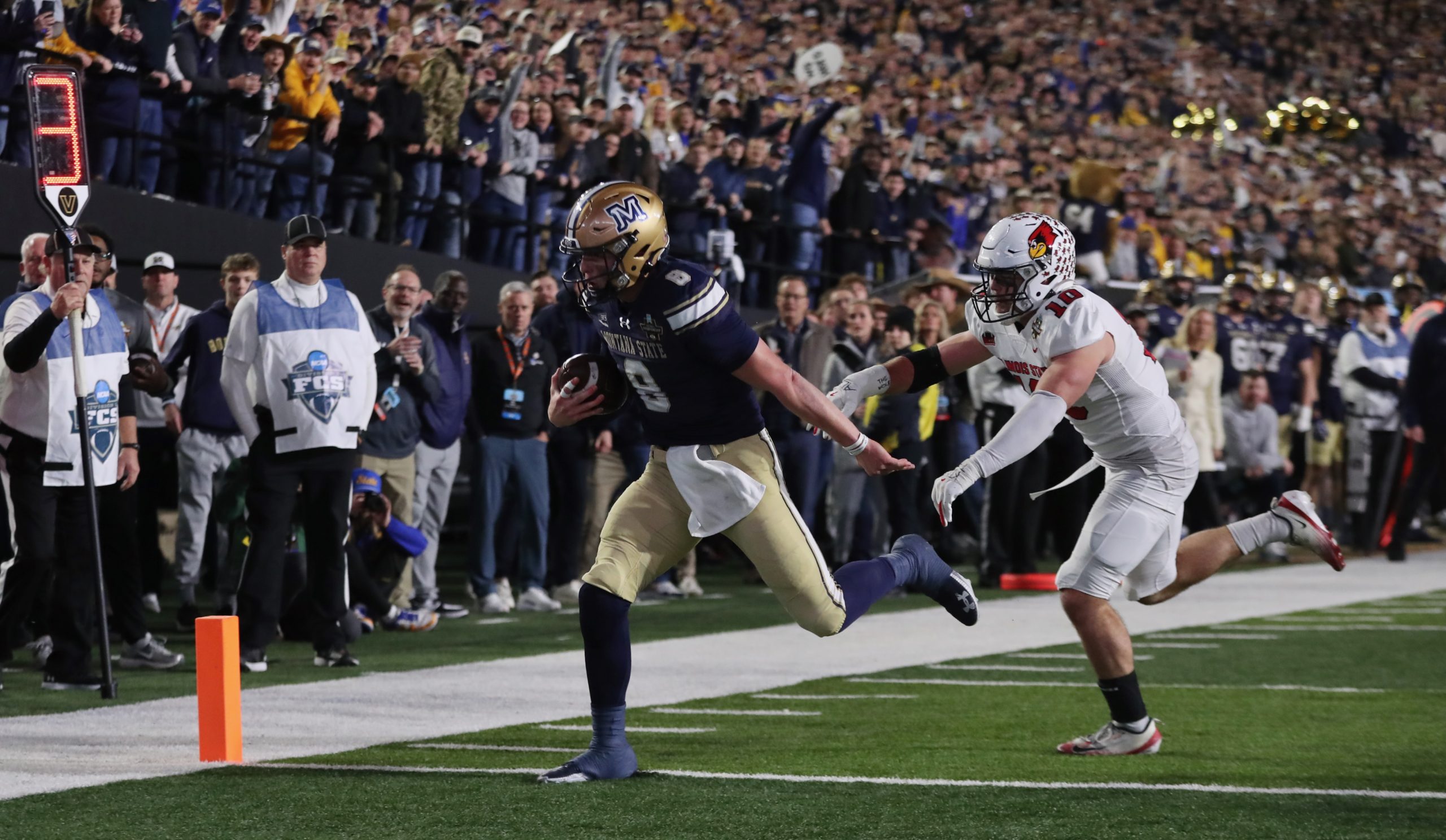 But 20 unanswered points had MSU trailing 34-28 in overtime against Illinois State. A Hunter Parsons blocked PAT led to Justin Lamson hitting Taco Dowler on a 4th down and 11 yards to go for a 14-yard touchdown. Myles Sansted’s PAT lifted Montana State to a 35-34 victory and its first national title since 1984.