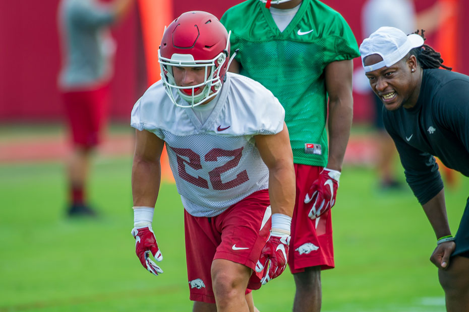 Reid Miller during practice at Arkansas after earning a scholarship as a sophomore/ courtesy of Arkansas athletics