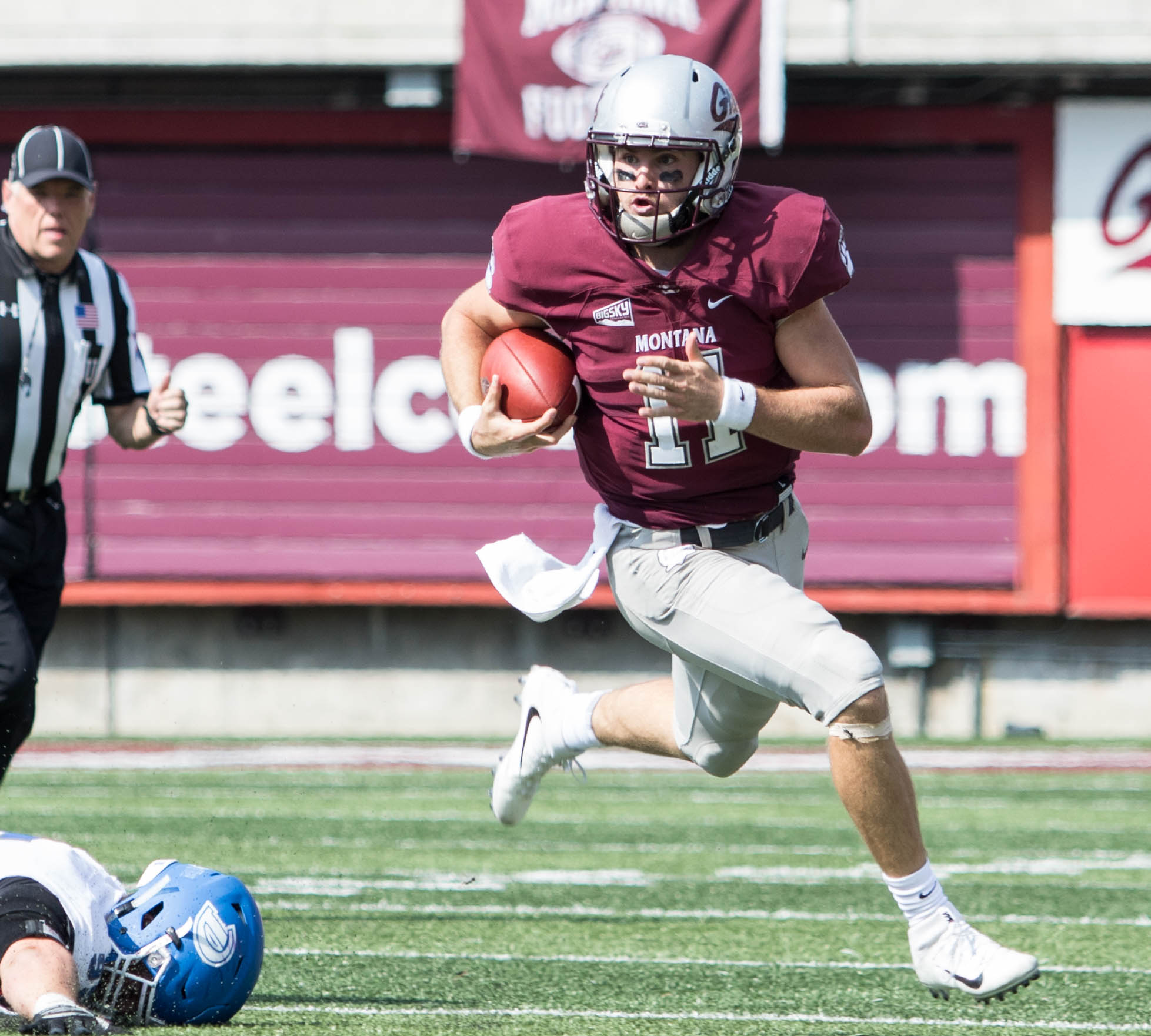 The former UNLV starter transferred to Montana from Fort Scott CC and has shown natural leadership qualities, an ability to throw while rolling out to both sides and elusiveness in the run game through three starts. He’s a dynamic runner who can both gain yards with his legs and get outside the pocket to buy time for his receivers. He has a strong arm, but started off inconsistent with his throws.
