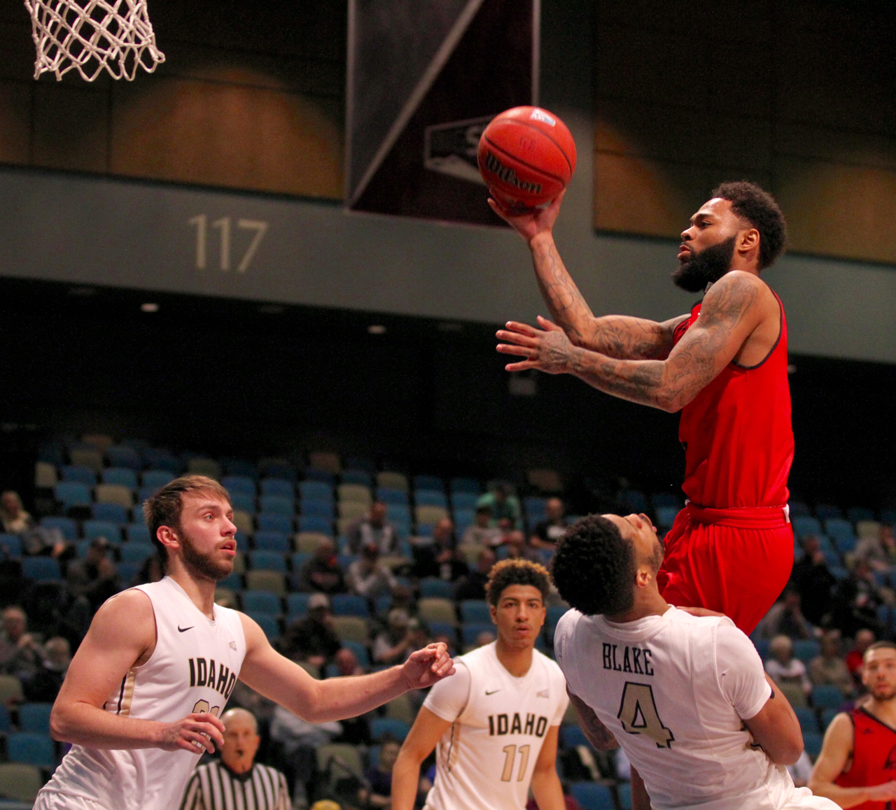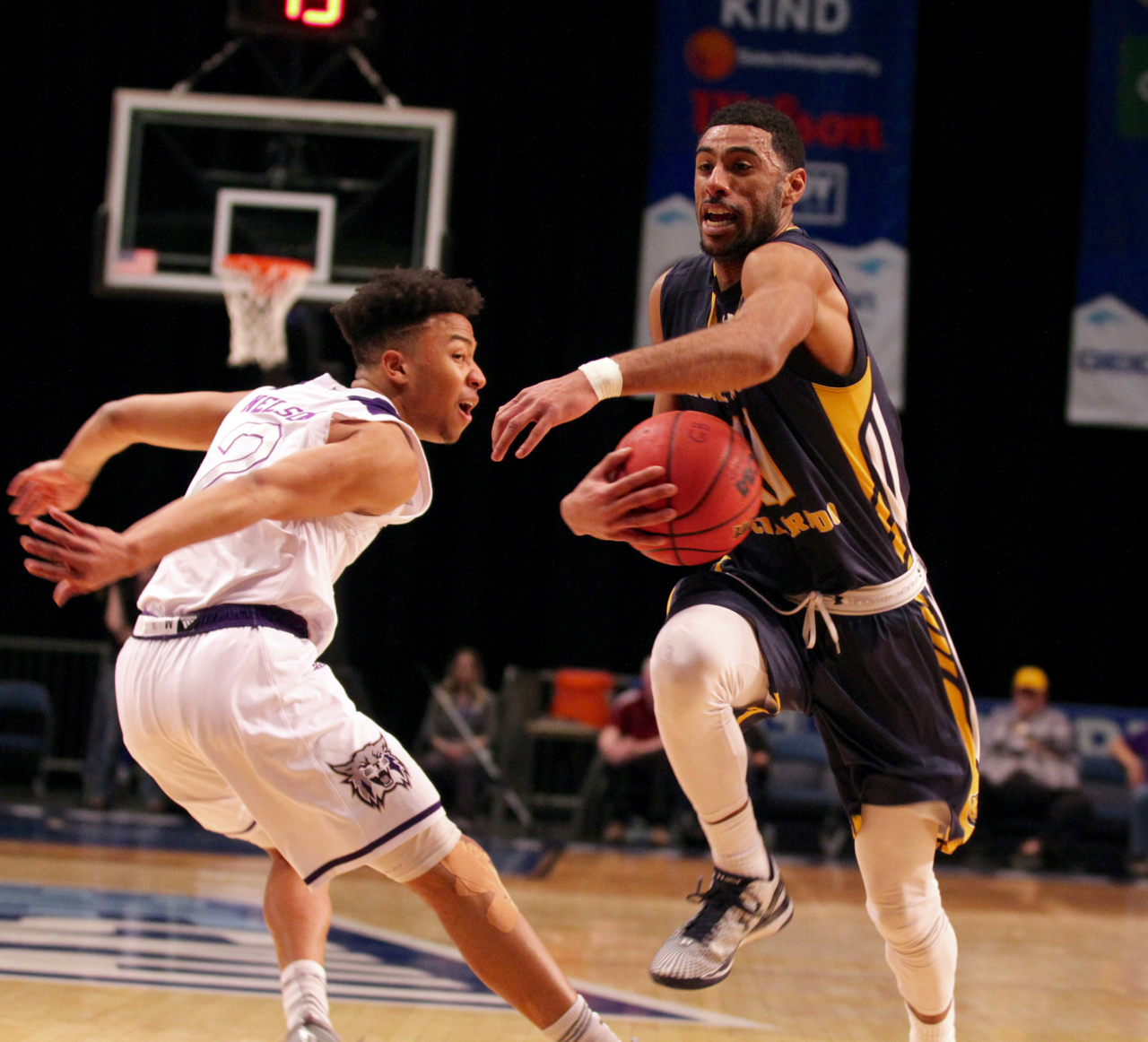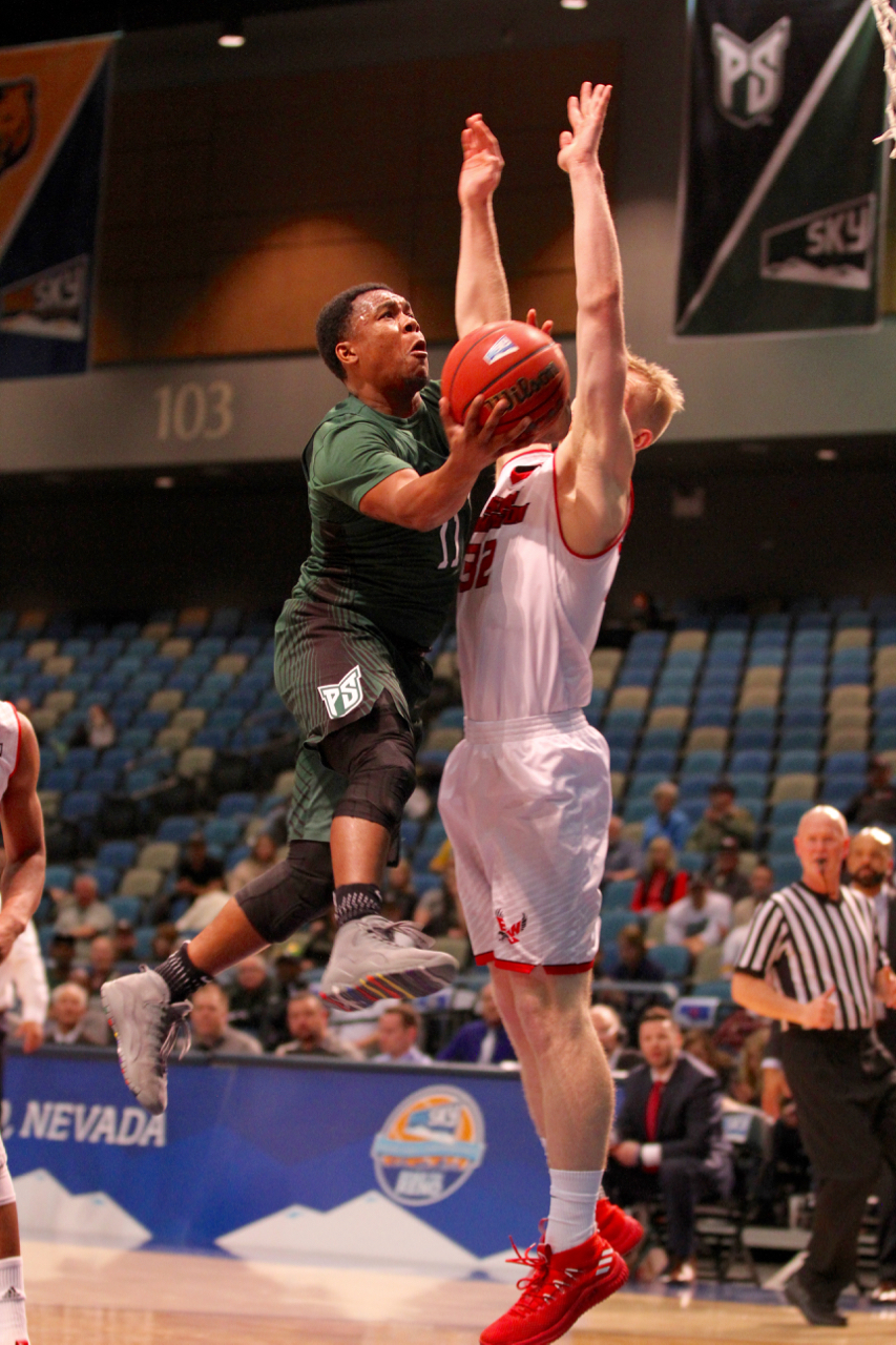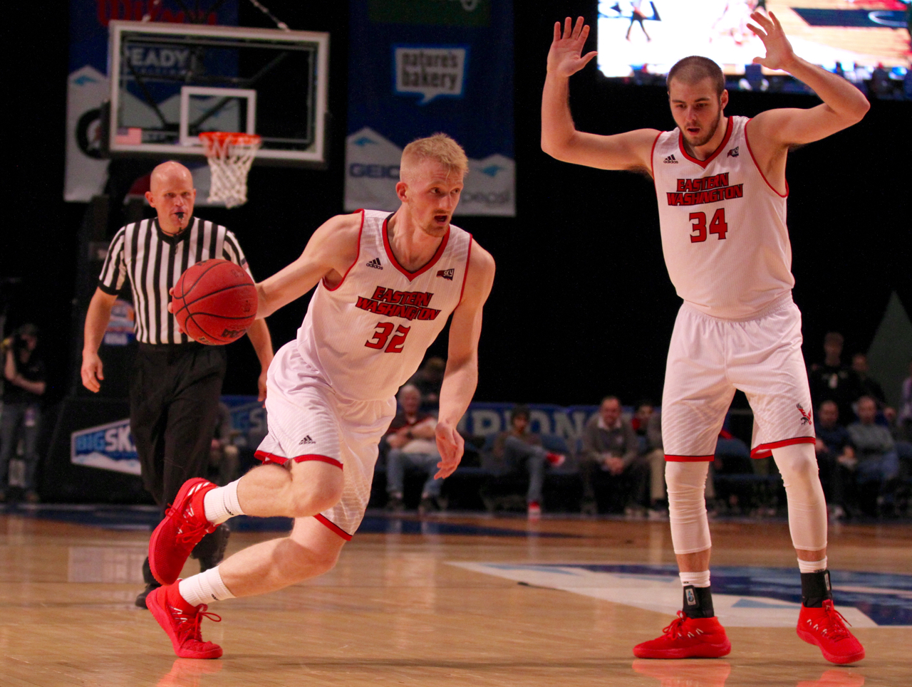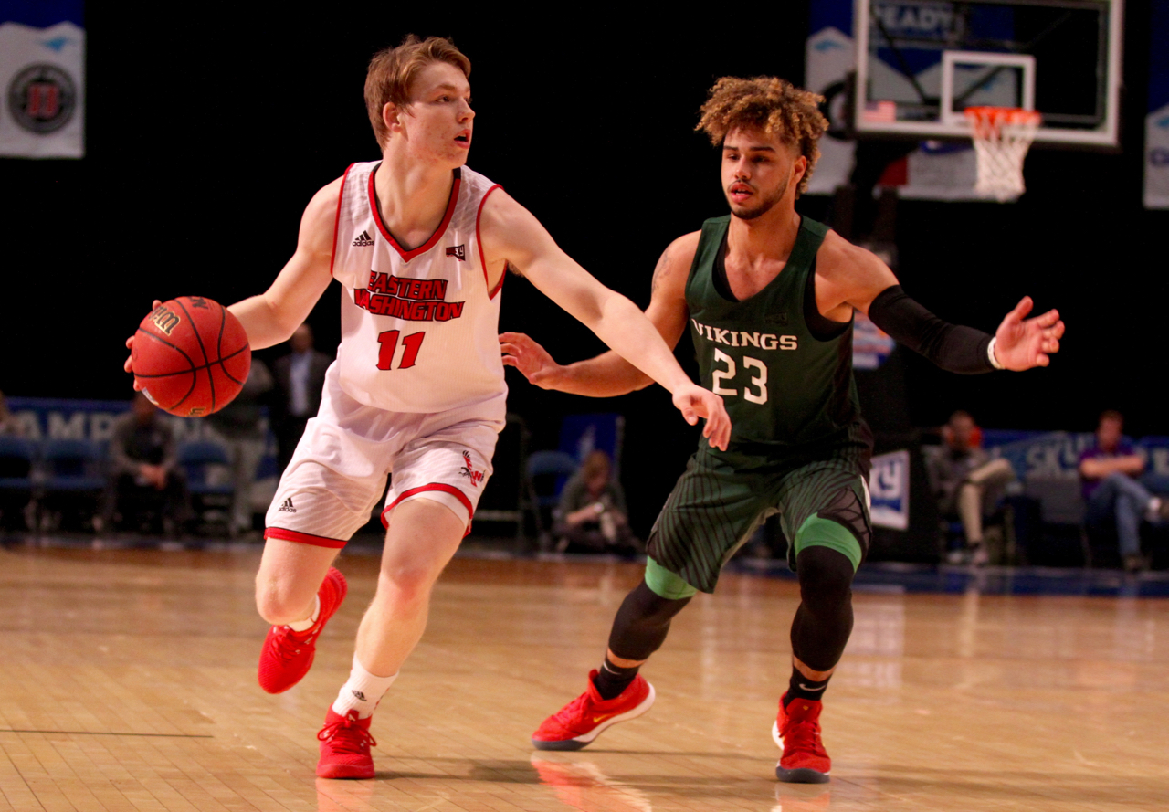 Eastern Washington guard Jack Perry (11) defended by Portland State guard Holland Woods (23)/by Brooks Nuanez