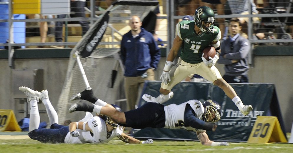 Davis held a 9-7 lead to the six-minute mark of the third quarter thanks to a 61-yard fumble recovery return for a touchdown by Anthony Baumgart and Matt Blair’s 25-yard field goal. Graves scored a 14-yard touchdown with 6:28 left in the third to put Cal Poly up 14-9 and the hosts never trailed again.
