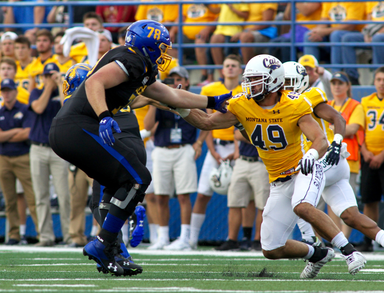 But Mac Bignell fears no man. Not Cooper Kupp, the current Los Angeles Rams’ standout rookie wide receiver that Bignell blasted for the first tackle for loss in league play of his now decorated career back in 2015. Not Joe Protheroe, Cal Poly’s All-American fullback who Bignell stuffed in the backfield twice during MSU’s 2015 win in Bozeman. Not North Dakota All-American running back John Santiago, who Bignell has smeared behind the line of scrimmage four times in his career. And he certainly does not fear Goedert, an intimidating physical specimen who weights at least 50 more pounds than Bignell.