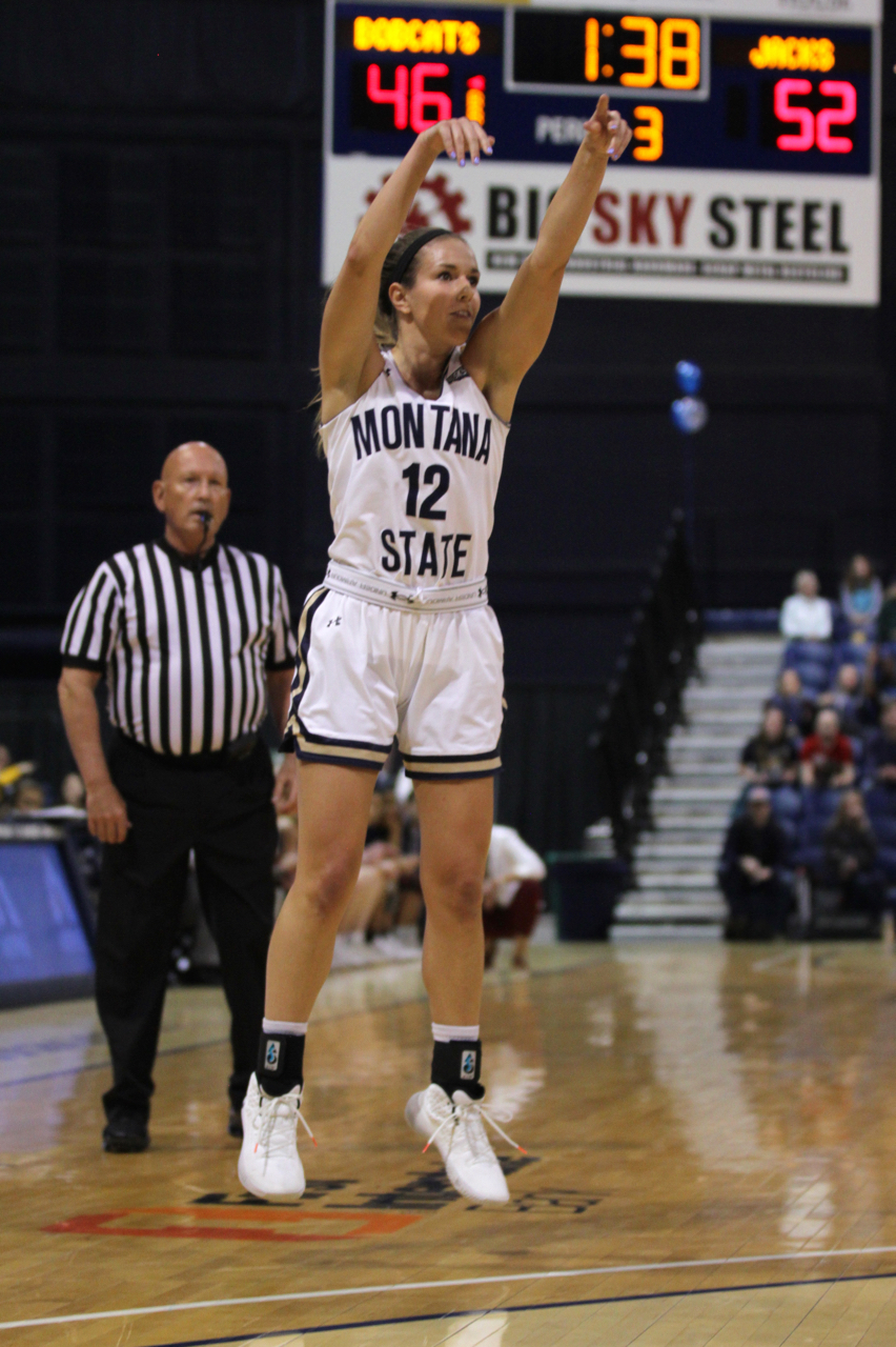 After the game was tied at four 90 seconds in, Northern Arizona (15-13, 12-7) used a 10-2 run to seize command. Montana State (21-6, 17-1) pulled to within one when senior Oliana Squires hit a short jumper near the end of the first quarter, but the Lumberjacks used a 12-1 run late in the second quarter to build a 40-26 lead at the intermission. NAU hit six three-pointers to Montana State’s one in the first half, and MSU hit only six of its 14 free throw attempts in that stanza.
