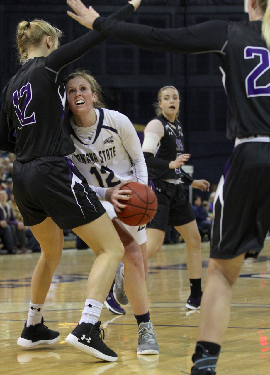 Squires paced MSU on the offensive end with a career-high 20 points and a career-best six three-pointers. It mark the second straight week for Squires hitting a career-high. The product of Colorado Spring, Colo., connected on two triples in the opening 20-minutes and went four-of-seven from long distance when MSU needed it the most.