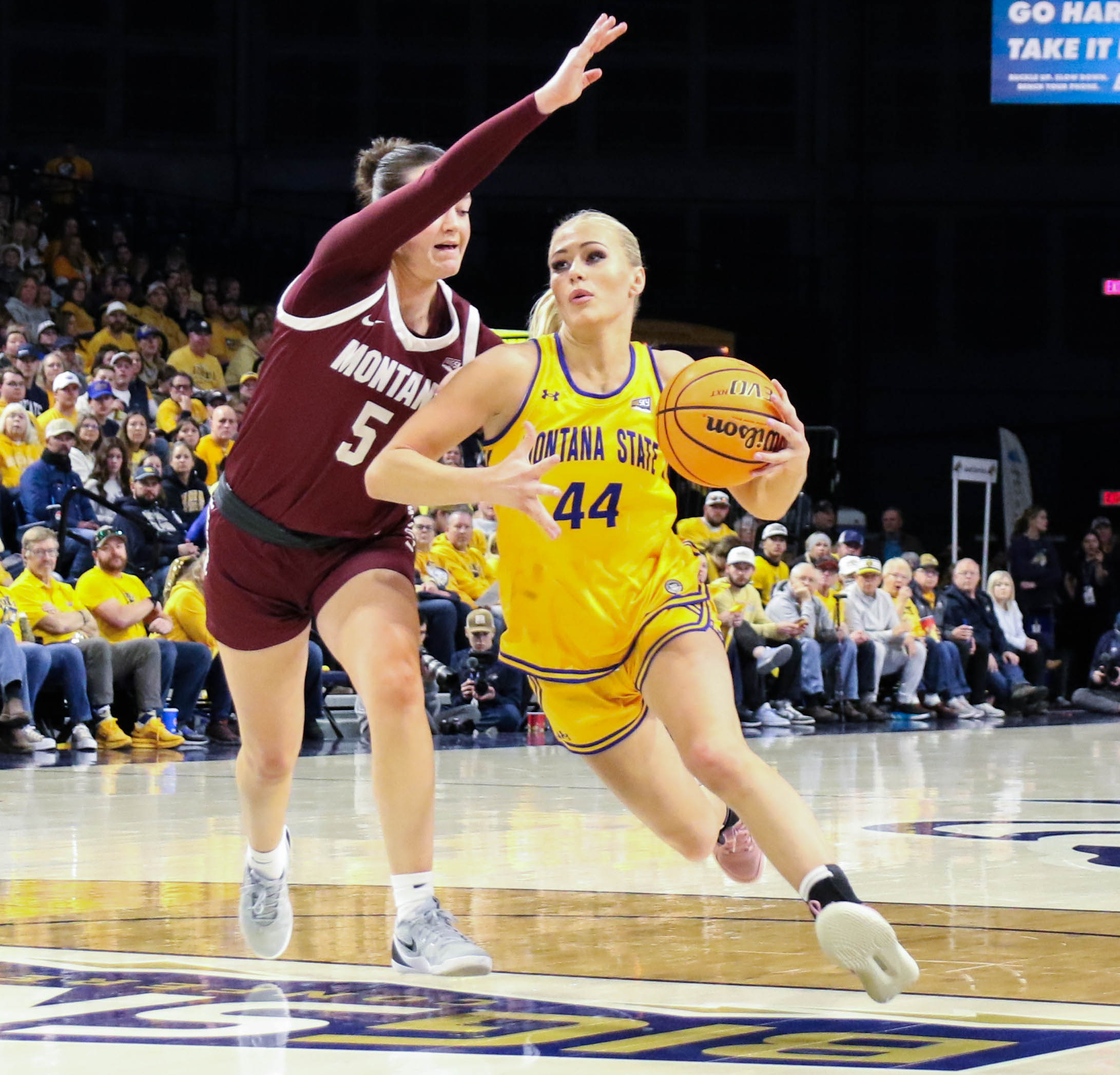 Saturday at Brick Breeden Fieldhouse, two teams going in opposite directions squared off on an exuberant day that saw Montana State celebrate its football national championship all morning long.