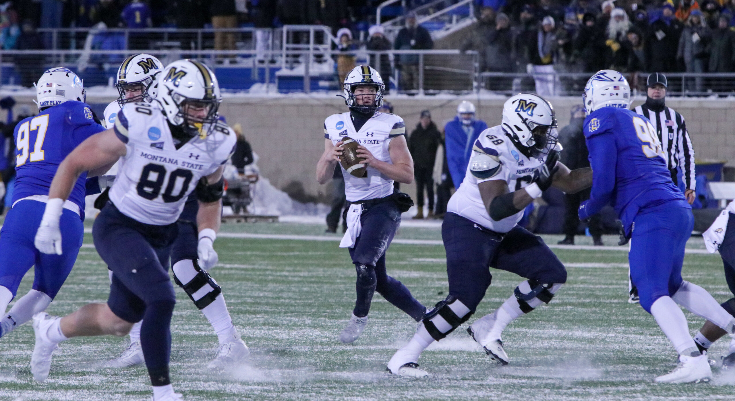The weather was the talk of the week and while it wasn’t the deciding factor, it did hamper MSU’s outside zone run game and the advantage it had with its overall team speed. Talk leading up to the game centered upon the arctic storm descending on the upper Midwest all week and the equipment for the contest simply making it to Brookings, as much or more as the talk about the Xs and Os of the contest.