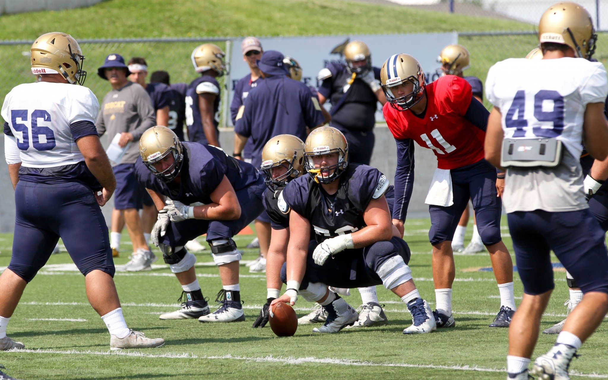 The offensive line took a hit on Wednesday when senior left guard J.P. Flynn rolled his left ankle, although Choate did not rule him out for Friday night. If Flynn can’t go, redshirt freshman Jake McFetridge will take the first-team reps in between junior left tackle Dylan Mahoney and sophomore center Alex Neale. On the right side, juniors Monte Folsom and Caleb Gillis continue to fight for the right guard spot while redshirt freshman Mitch Brott is still holding off graduate transfer Patrick Carroll for the right tackle spot.