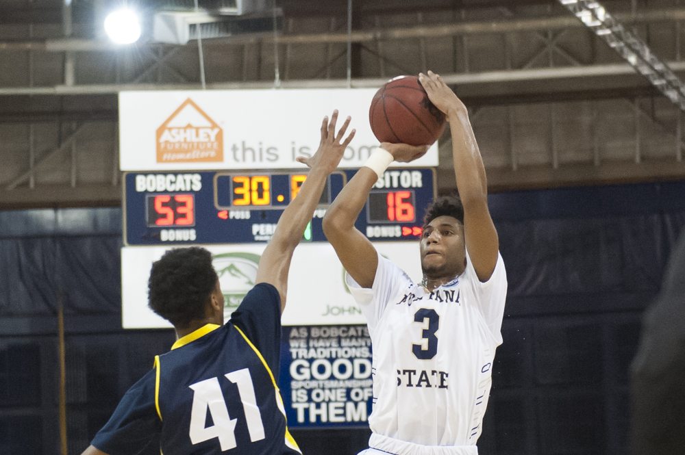 Hall set the tone but most of the Bobcat roster contributed. Montana State’s bench scored 52 points behind career nights from true freshman Sam Neumann and junior point guard Nahjee Matlock. Matlock entered the game averaging 2.7 points and 9.2 minutes per game. He was 4-of-16 from beyond the 3-point line entering the contest. Thursday, Matlock drilled three straight first-half 3-pointers in scoring a career-high 13 points. He also dished out 10 assists as MSU totaled 24 dimes on 35 made field goals.
