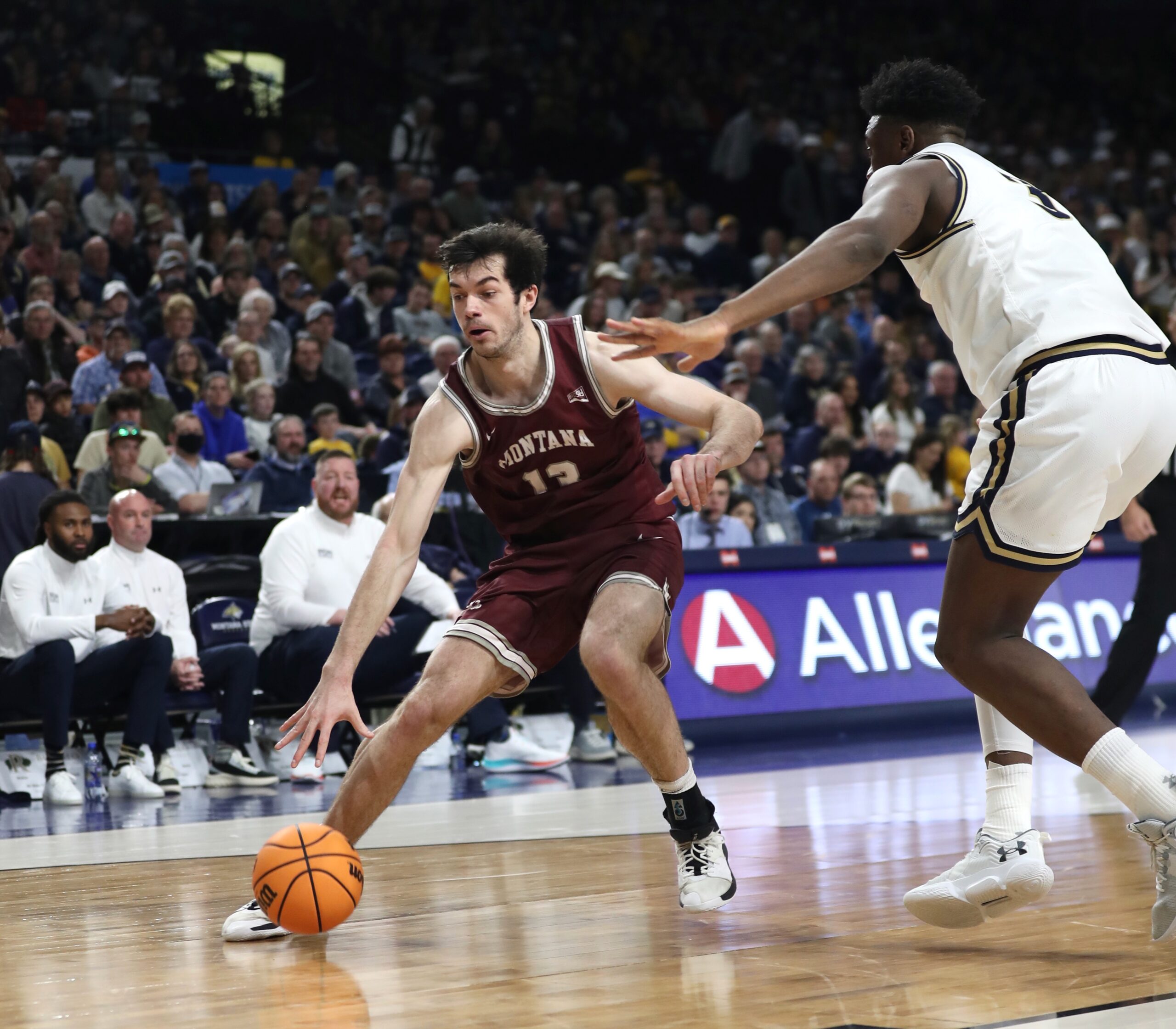 On Montana’s first four possessions against North Dakota State on December 10, he posted up for a short jump hook, faced up and drove from the 3-point line for a bucket, set a screen that freed Brandon Whitney for a layup, and battled to tap out an offensive rebound that led to another layup by Aanen Moody. A couple possessions later he hit a 3, all in the first five minutes of the game.