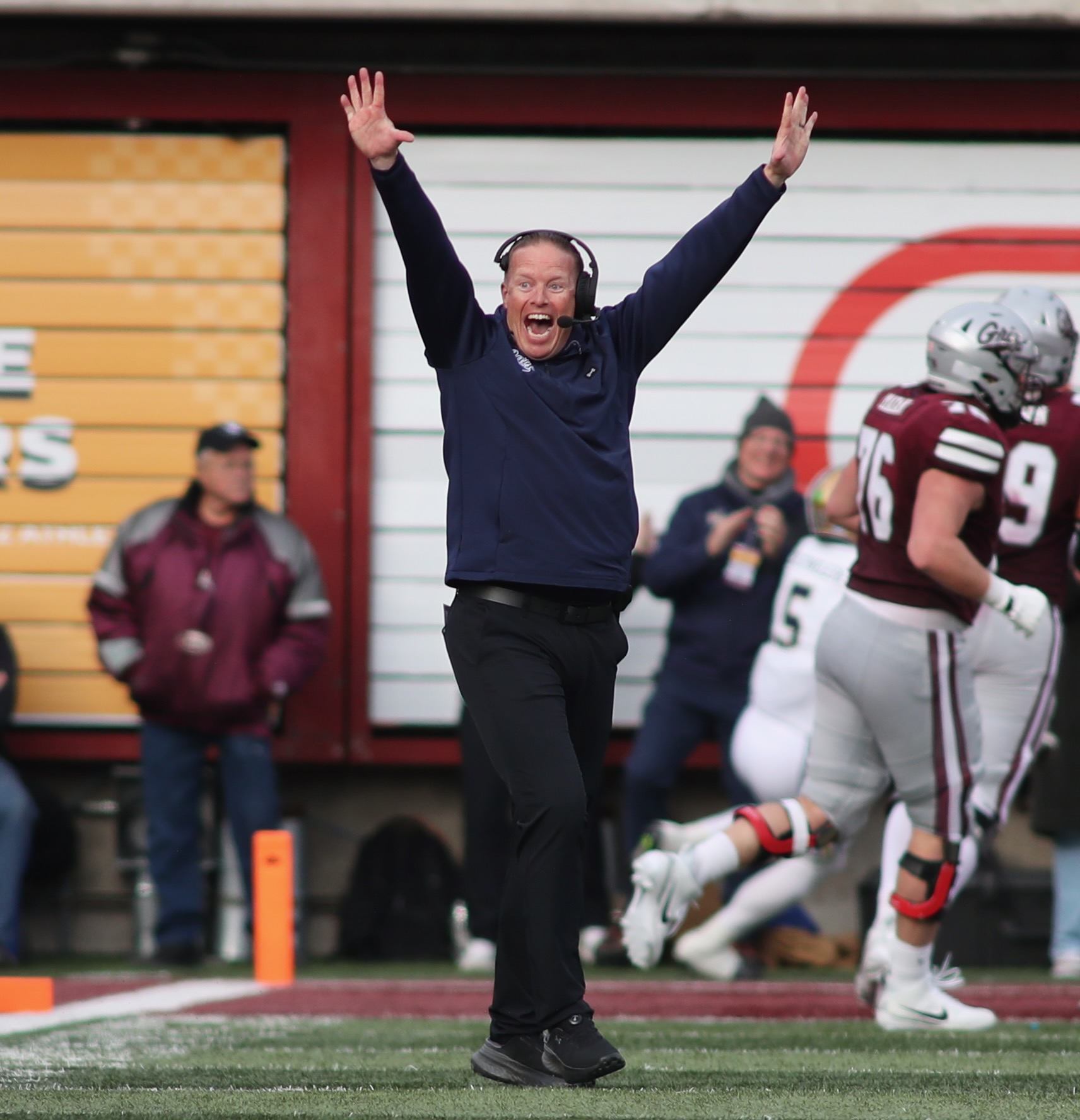 Yet this Bobcat team stood stall. And when their towering head coach had his first rivalry win to silence most of the record-setting crowd, he ran over the stands to find his wife, Molly. A quick kiss preceded an impassioned post-game speech while Vigen held the Big Sky Conference football trophy as his players burst into celebration again.