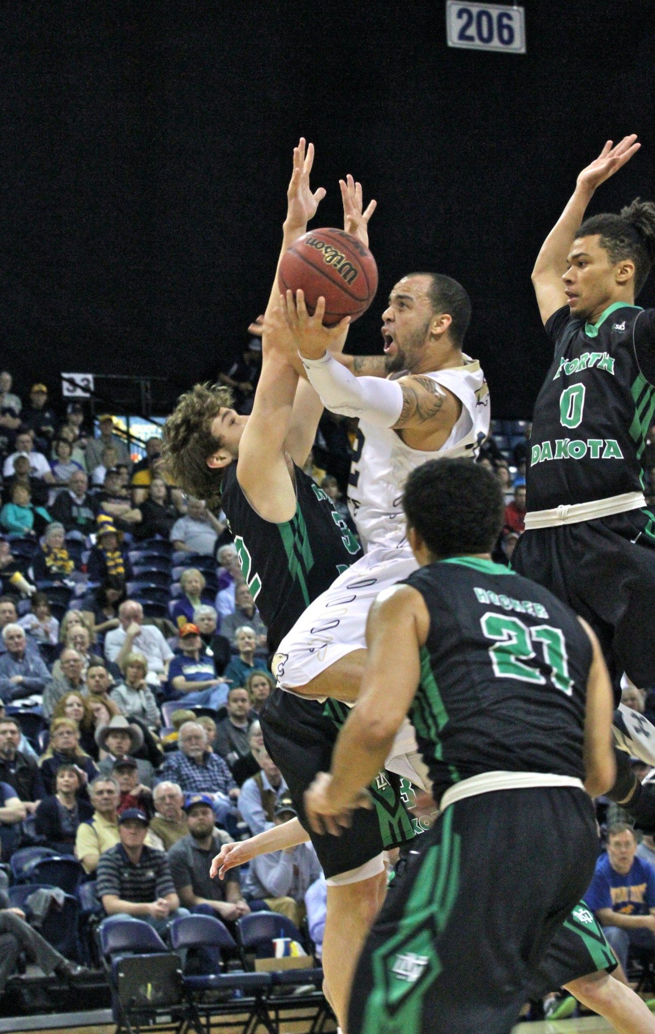 UND freshman Conner Avants scored seven points during a 12-3 North Dakota run that cut the MSU lead to 31-27 before Colbert answered. He converted an old-fashioned 3-point play to push the lead back to double digits. Crandall scored four straight but Green and Everett answered with 3-pointers and Neumann corralled a missed Colbert 3-pointer and converted at the buzzer to give MSU a 39-30 halftime lead.
