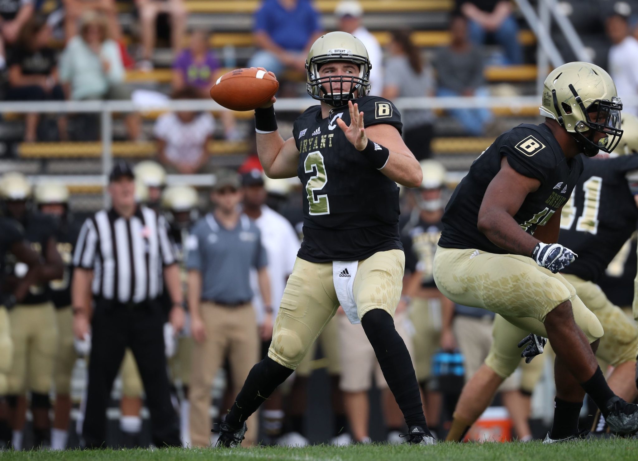 Bryant’s senior quarterback is a three-year starter with 14 wins under his belt as he enters his swan song season. What the former transfer from Akron lacks in height — he’s 6-foot and a stocky 220 pounds — he makes up for in moxie and polish.