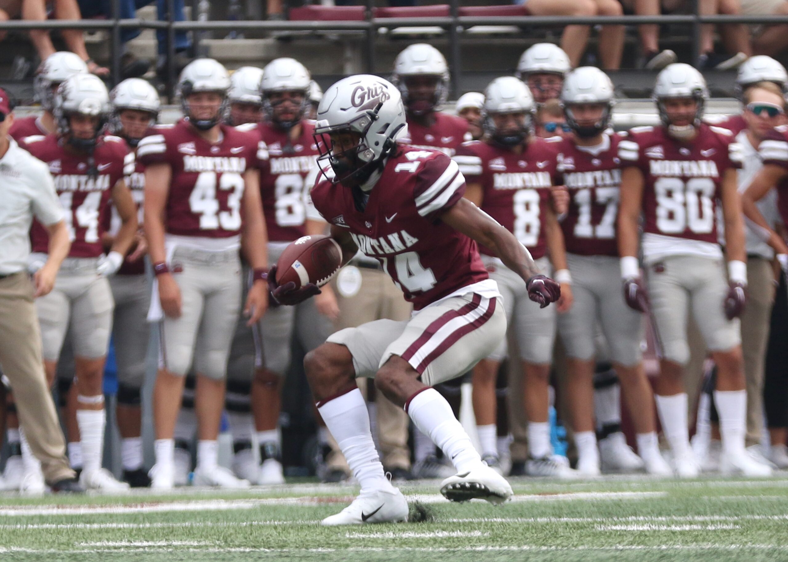 Back in Missoula, there were plenty of Griz fans turning to their watching companions with a smirk and an I told you so. Fontes, listed at 6-1 and 172 pounds and bearing an uncanny resemblance to rapper (and former star basketball player!) The Game, has been a training camp standout each of the last two years, for obvious reasons – he’s really fast and he makes plays. The hype train really got rolling this spring, when Fontes cut behind the bench and back onto the field to prevent Dylan Simmons from a 100-yard pick-six in the Grizzlies’ spring game.