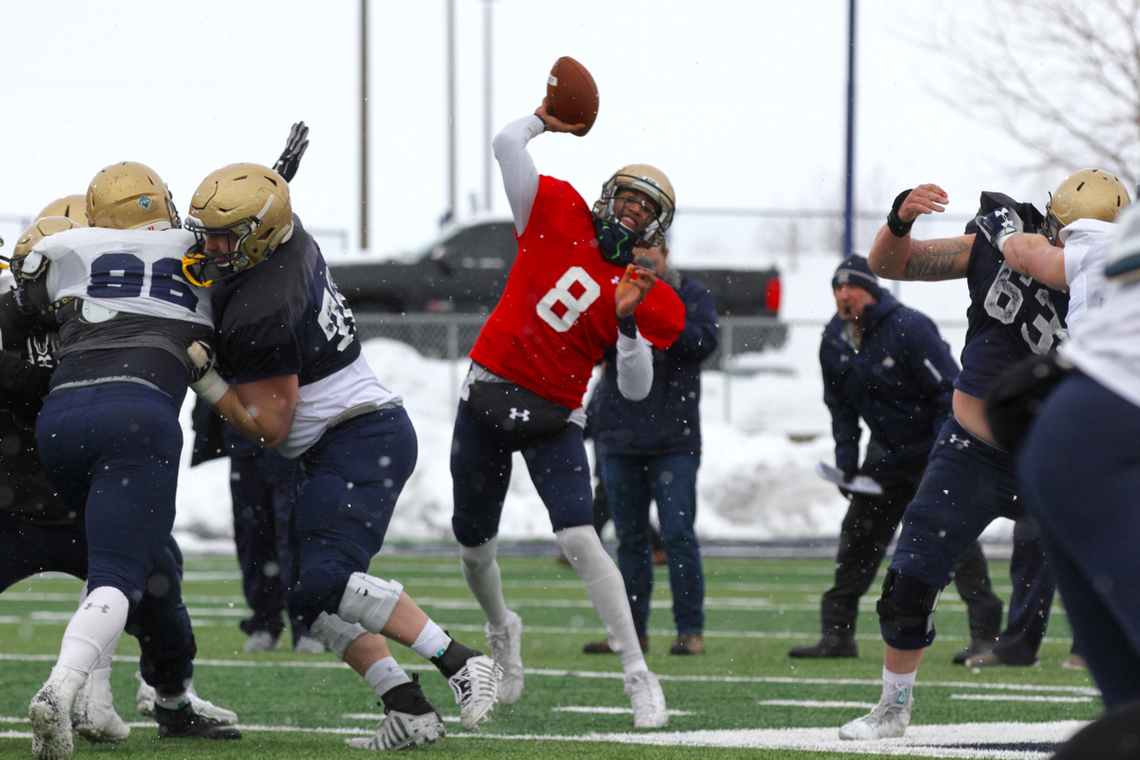 Defensive coordinator saw much to like, along with areas to improve, on Saturday. “I thought it was a good exchange with the offense making some plays and (the defense) making a few as well,” he said. “I didn’t think we finished as well in the red zone as we should have, but we were good in two-minute situations and I thought we pressured the quarterback well. There were lots of positives but a ton to clean up and improve on.”