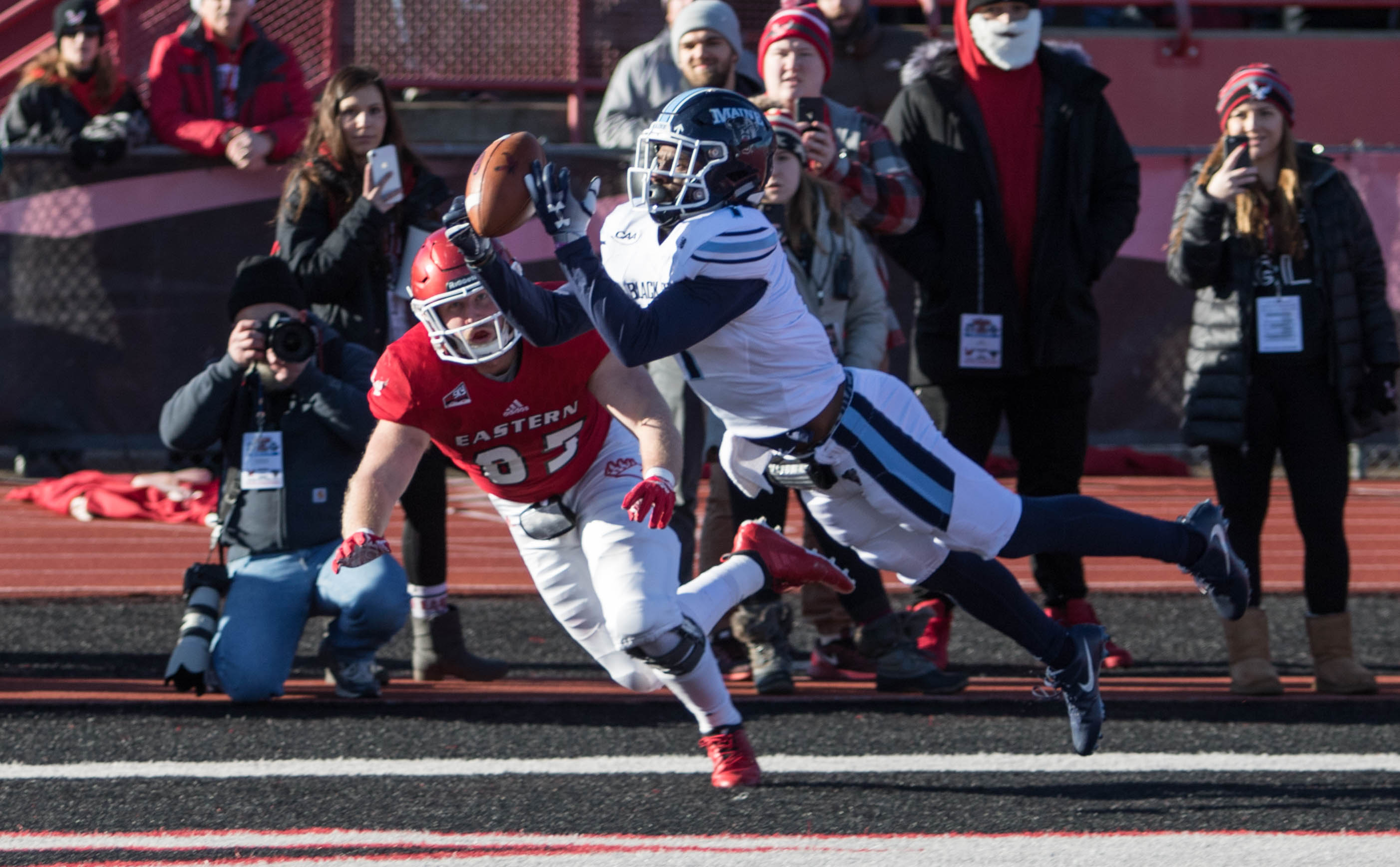 Eastern Washington senior Nsimba Webster dominated Maine’s man coverage from the outside and the slot. The first-team All-Big Sky selection caught nine passes for 188 yards and four touchdowns/ by Jason Bacaj