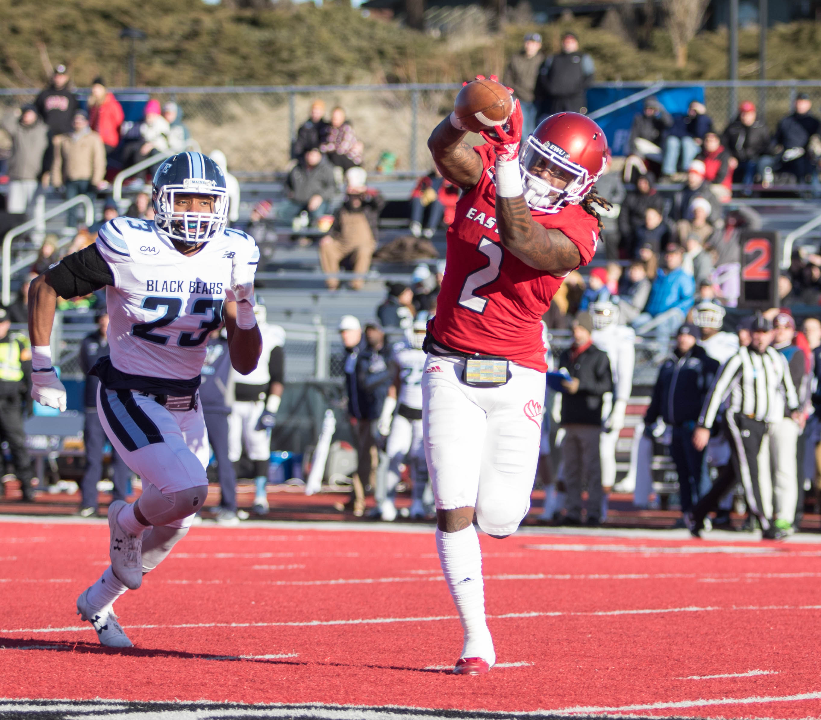 Eastern Washington senior Nsimba Webster caught a 58-yard touchdown with 1:05 left in the third quarter to give Eastern a 43-19 lead and answer Maine’s 19-point quarter/ by Jason Bacaj