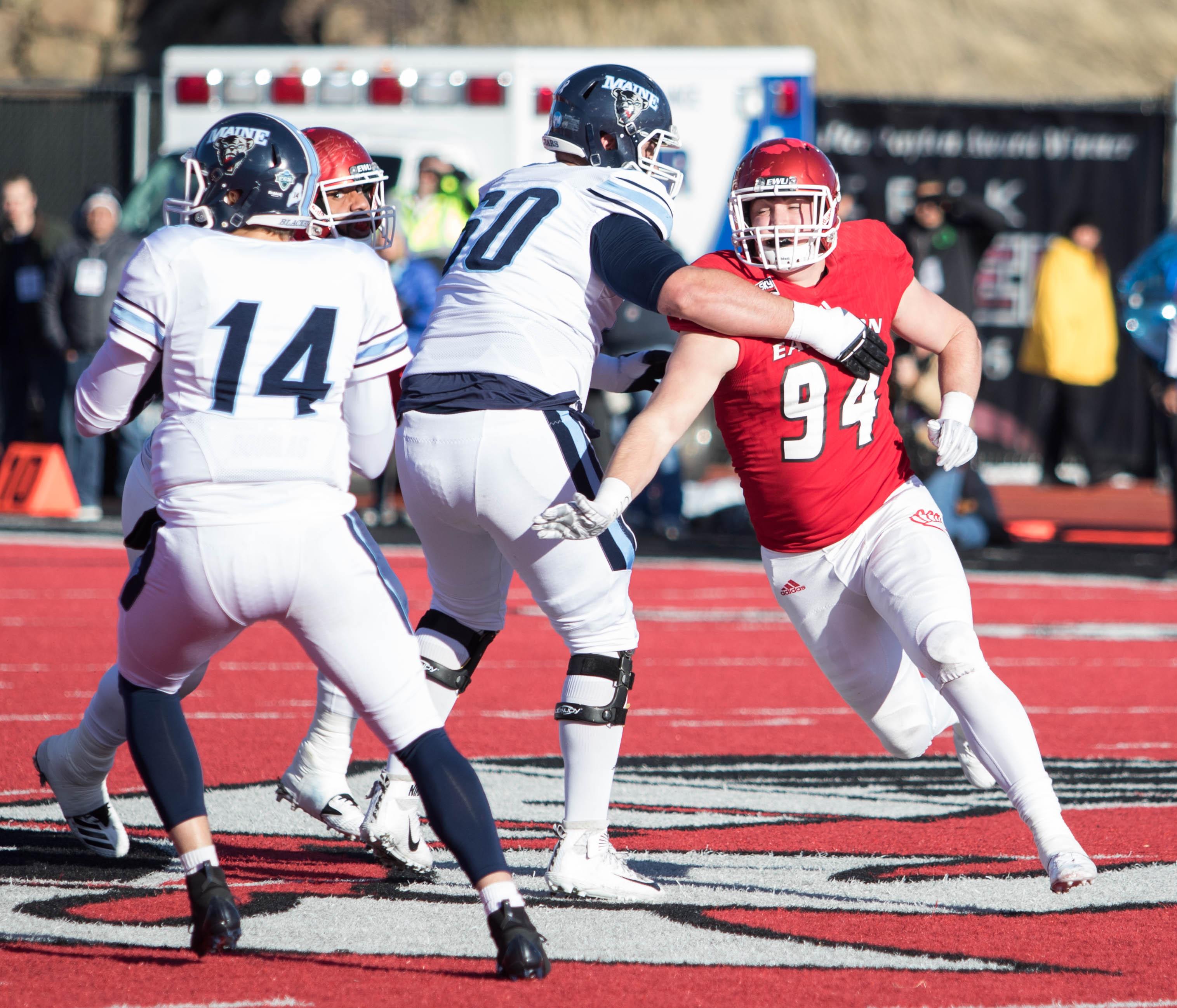 Eastern Washington sophomore Mitchell Johnson, a second-team All-Big Sky selection, shared a sack with Jonah Jordan in the first quarter that forced Maine to punt, part of an Eastern Washington onslaught that helped the Eagles race to a 21-0 lead/ by Jason Bacaj