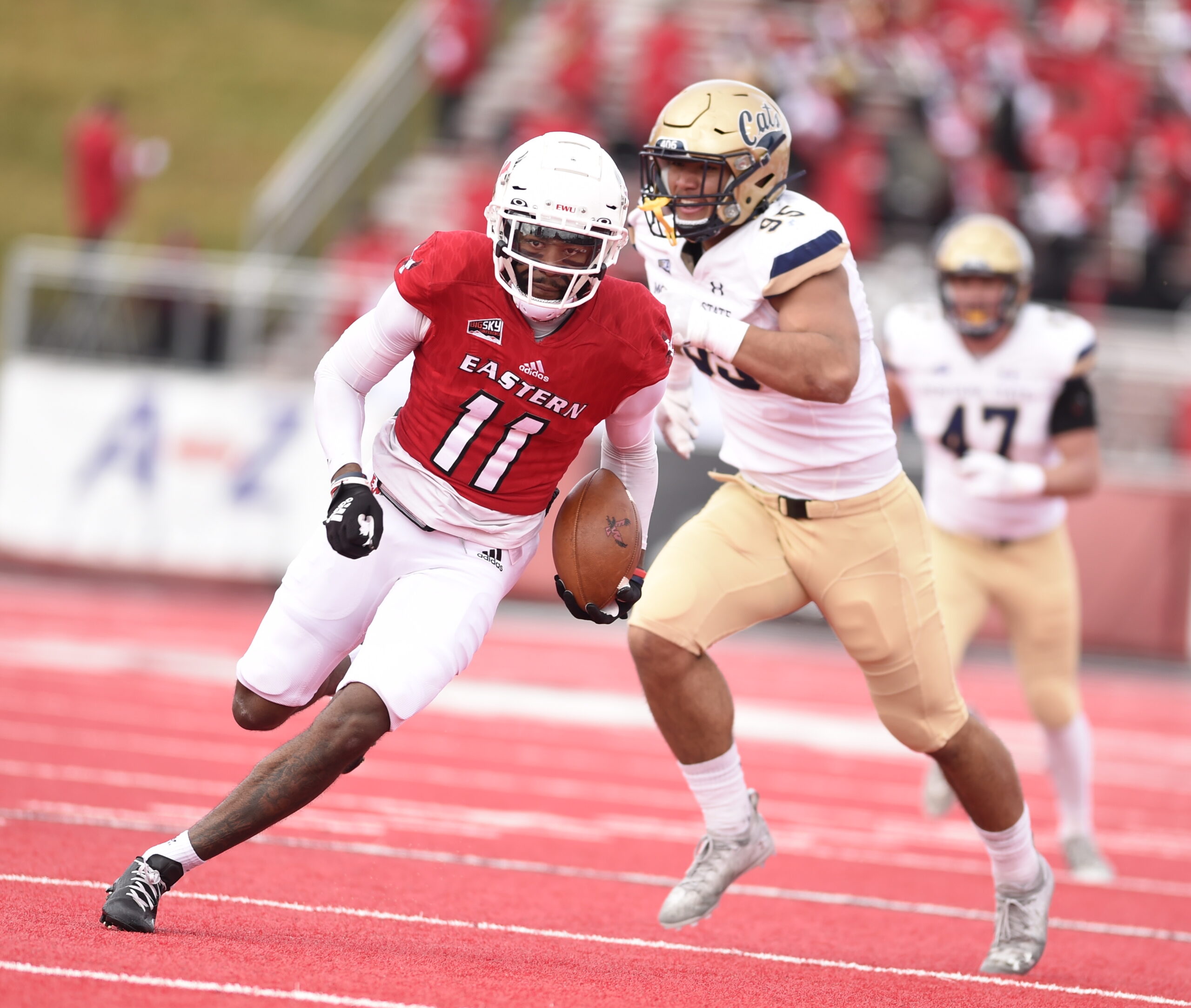 Stadium: Roos Field holds 8,700 fans. Complete with its trademark red turf, the stadium is named after Michael Roos, an All-Big Sky offensive lineman who is currently a Pro Bowl offensive lineman for the Tennessee Titans. EWU drew just 3,932 to its opener.