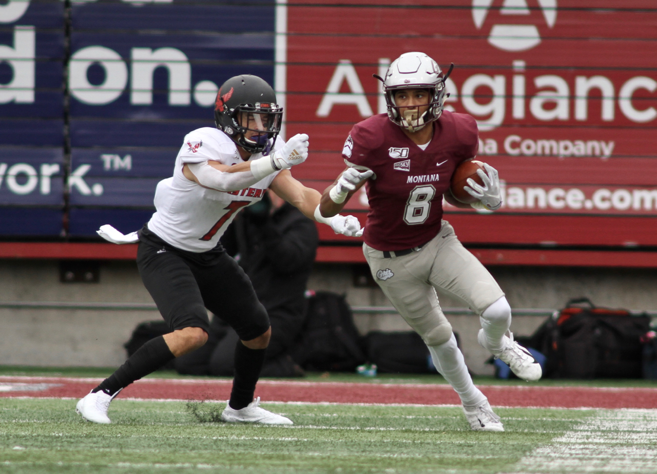 Montana defeated Eastern Washington 34-17 in Missoula despite missing senior quarterback Dalton Sneed. The Griz rushed for 254 yards on a season-high 55 rushes, including 131 yards on 26 carries for Marcus Knight, who scored three touchdowns on the ground.