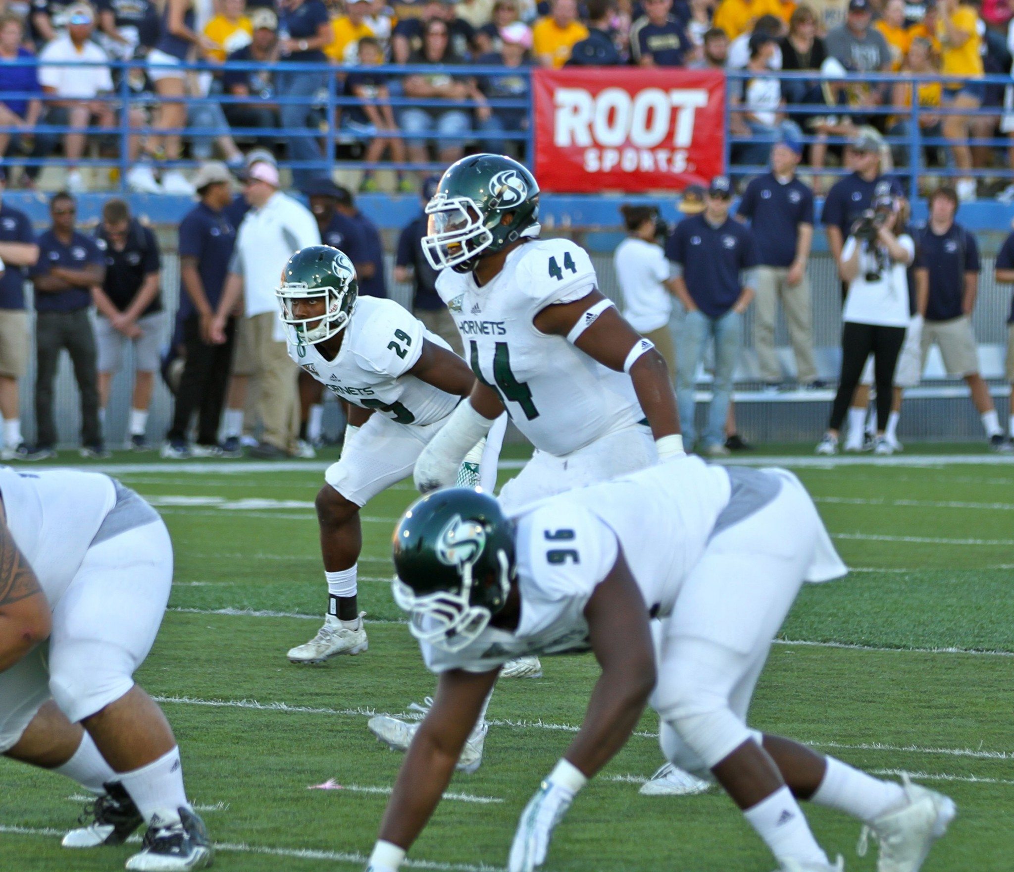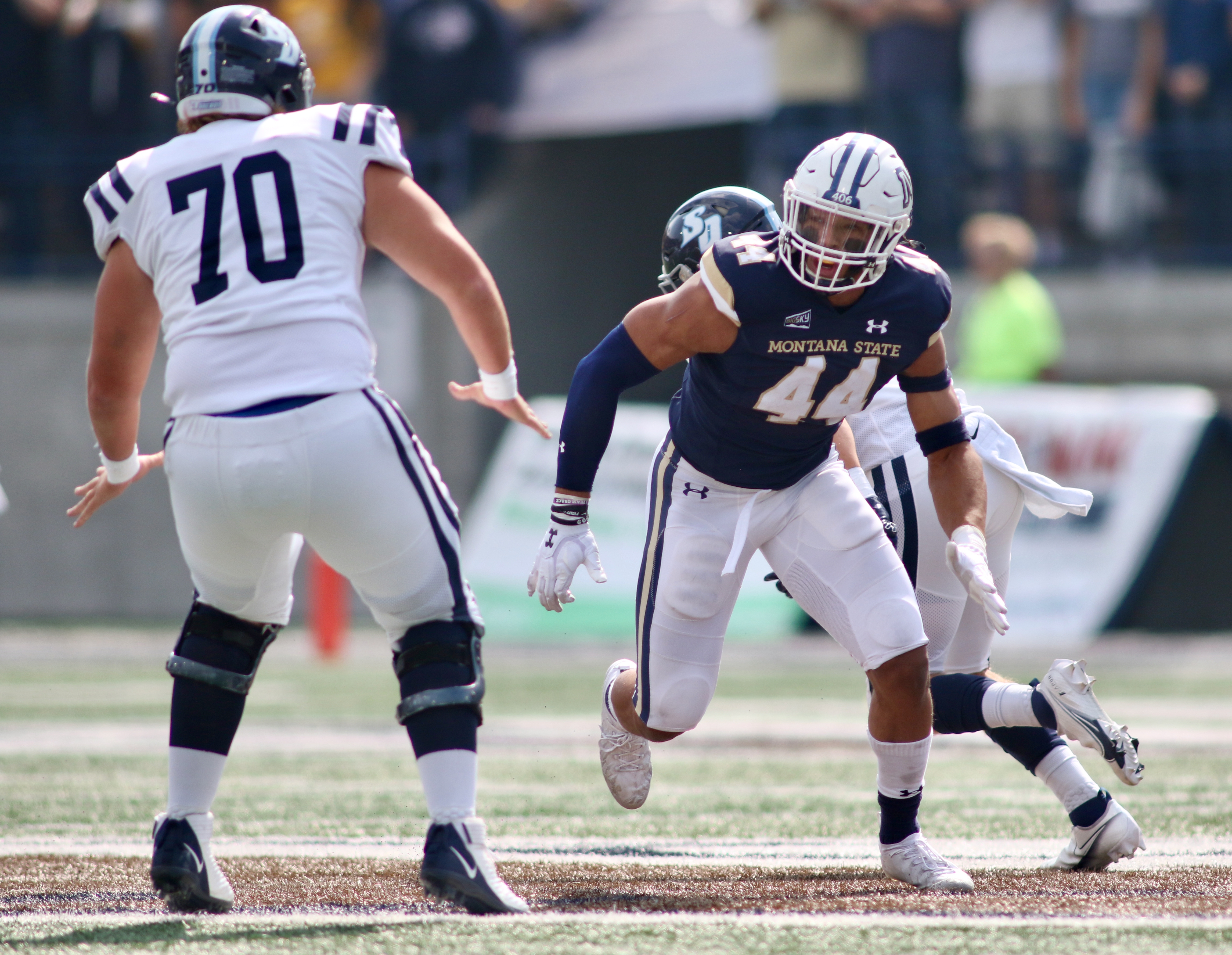 Sac State linebacker Darnell Sankey (44) pre-snap vs. MSU