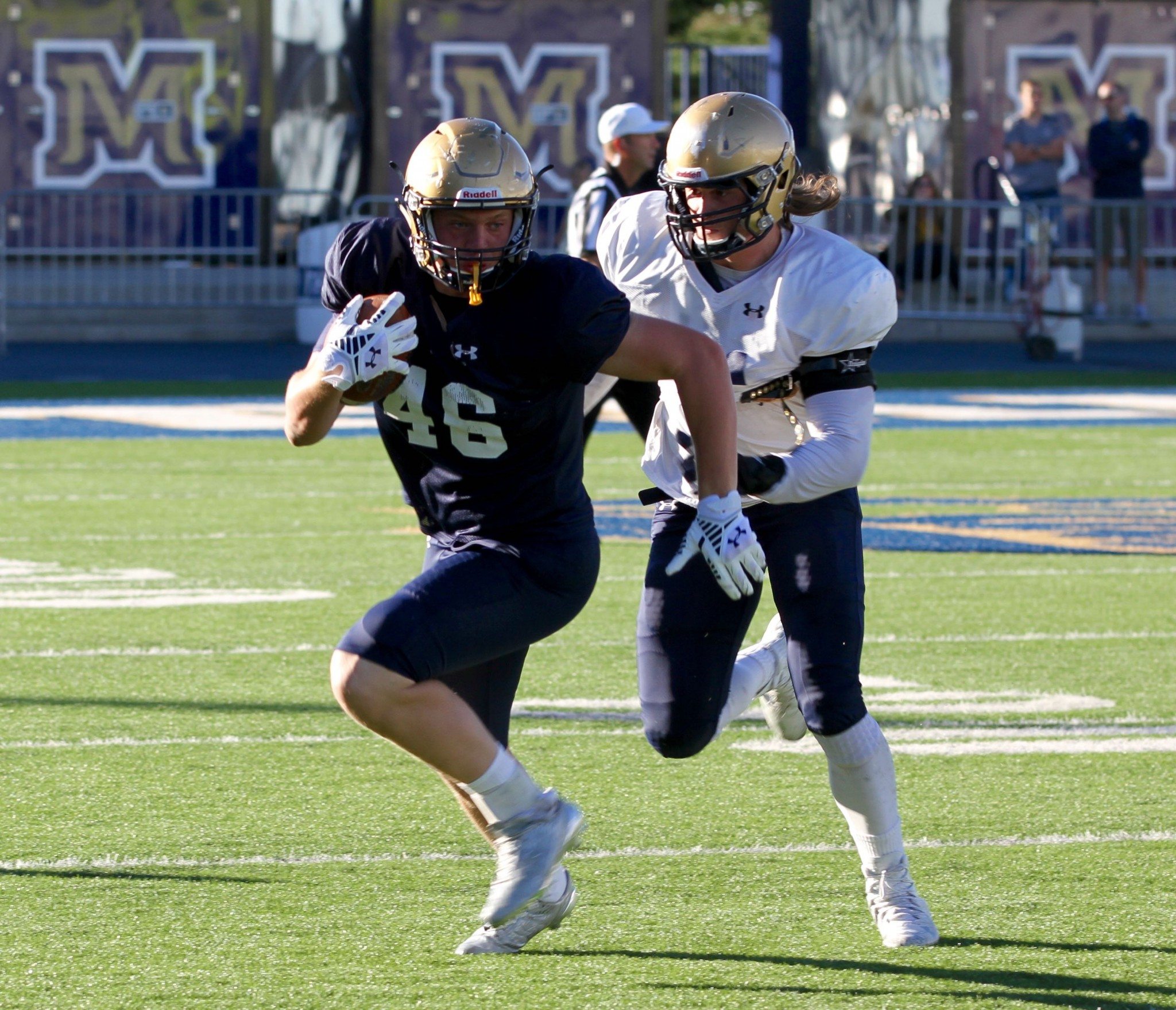 Former MSU quarterback DeNarius McGhee and former UM linebacker Jordan Tripp in 2013
