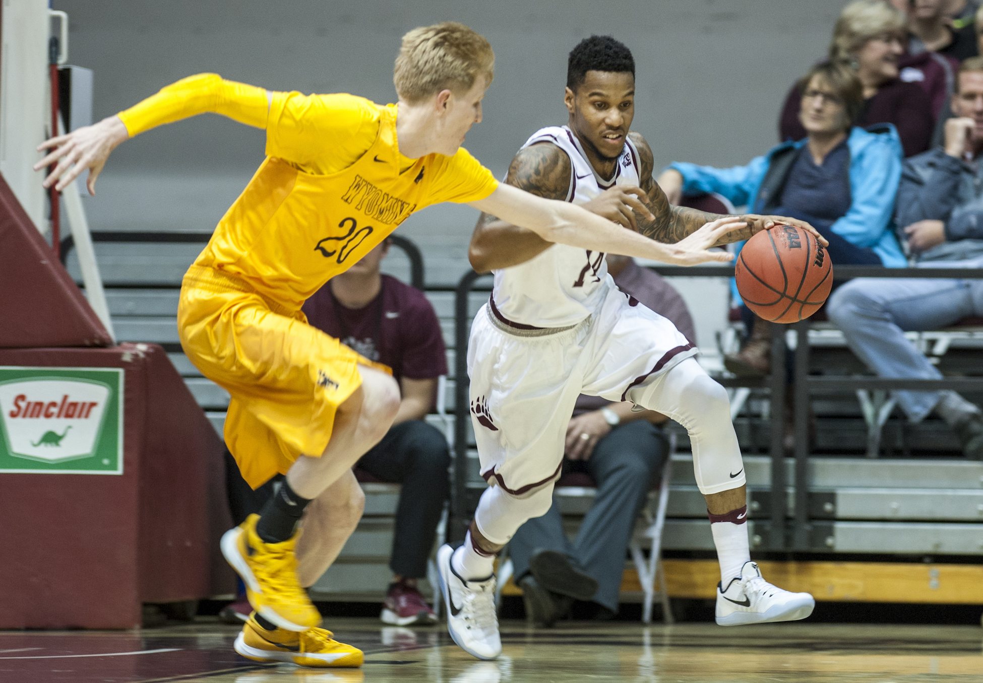 The game, which featured 12 lead changes and 13 ties, see-sawed back and forth from there. Montana got its points on a free-throw and back-to-back buckets on contested drives from Ahmaad Rorie, who finished with 10 on a 3-for-11 night. Those five points were balanced by the four points Alan Hemdon scored for Wyoming to even it at 69.