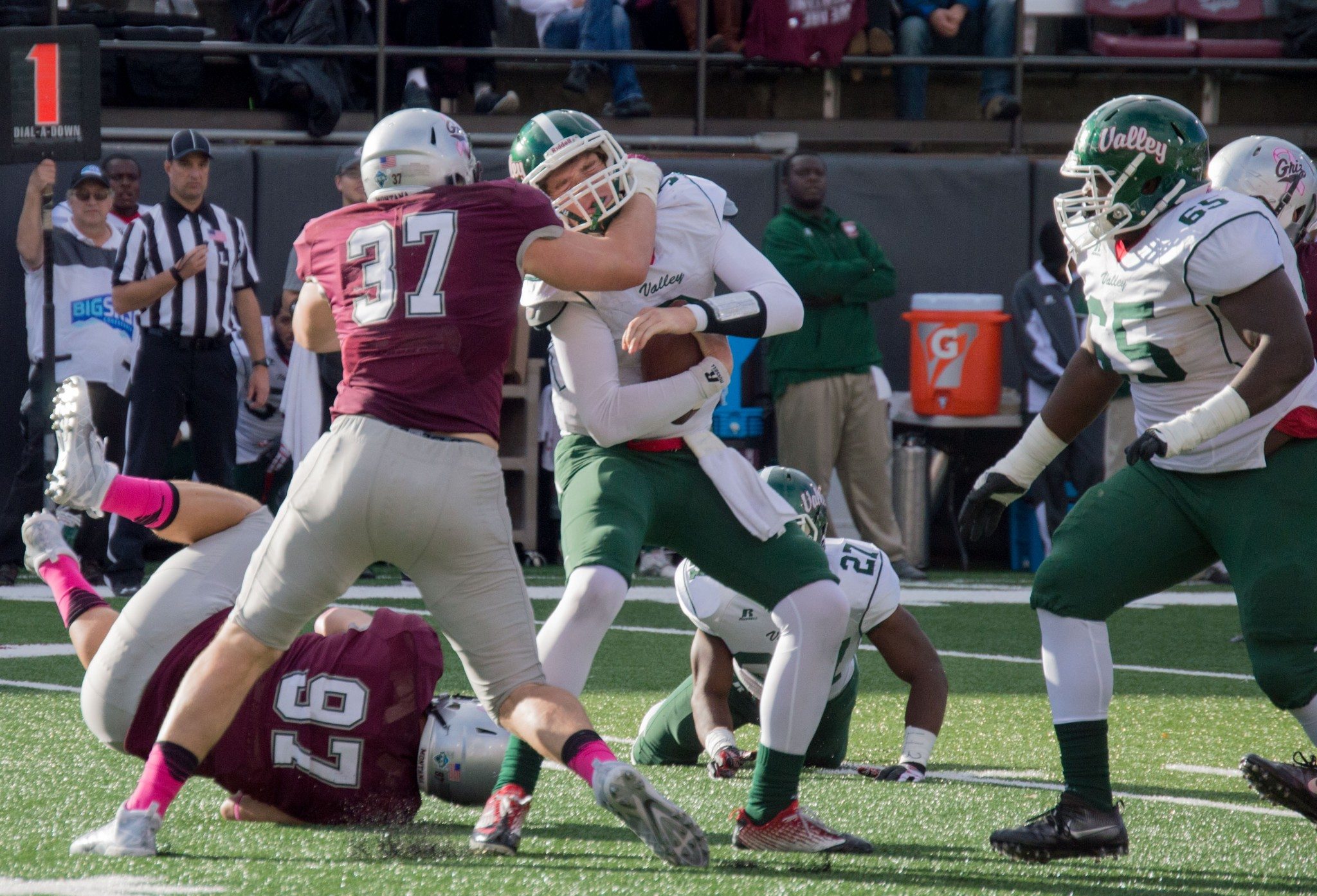 Montana’s offense then sputtered, turning the ball over when Gustafson was blindsided by Patrick Harbin. The force of the hit jarred the ball loose and Bryant Jones recovered it at the Montana 19-yard line.