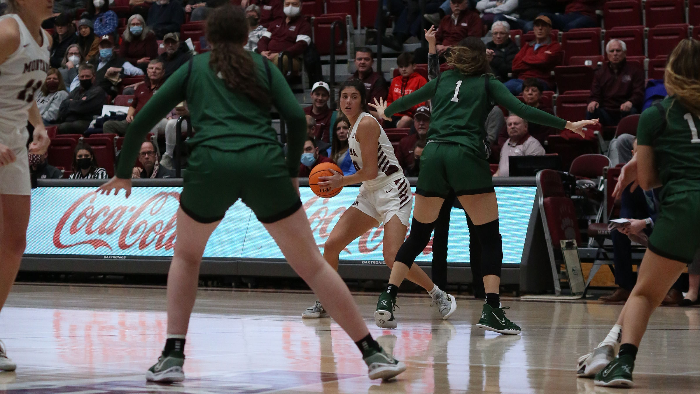 Montana scored over 20 points in every quarter. Freshman Haley Huard with 18, Sammy Fatkin with 16, Abby Anderson with 14 and 10 rebounds, Carmen Gfeller with 12.