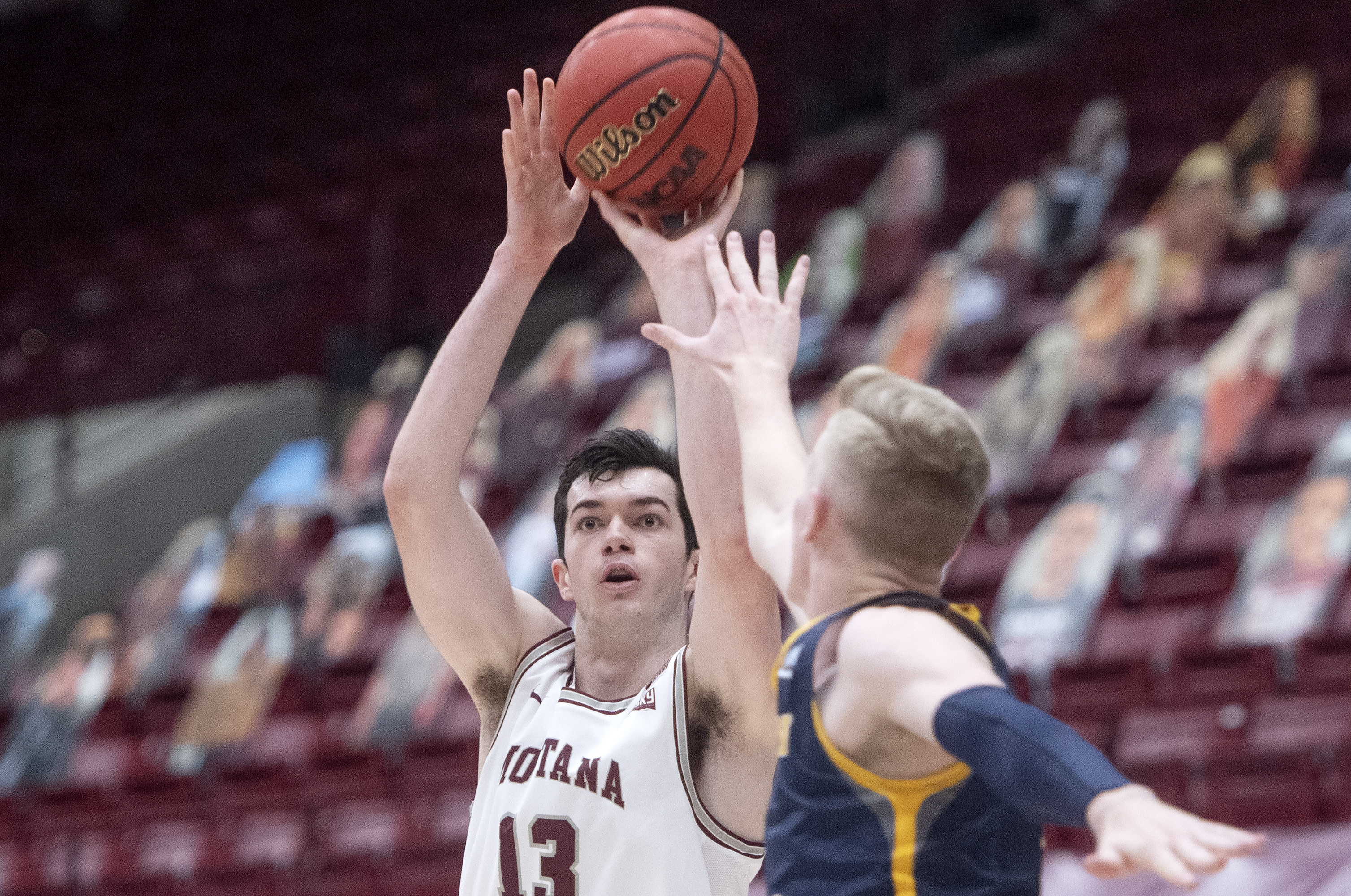 Montana freshman forward Josh Bannan (13) releases a shot vs. Northern Colorado Saturday/by Tommy Martino – Griz Communications
