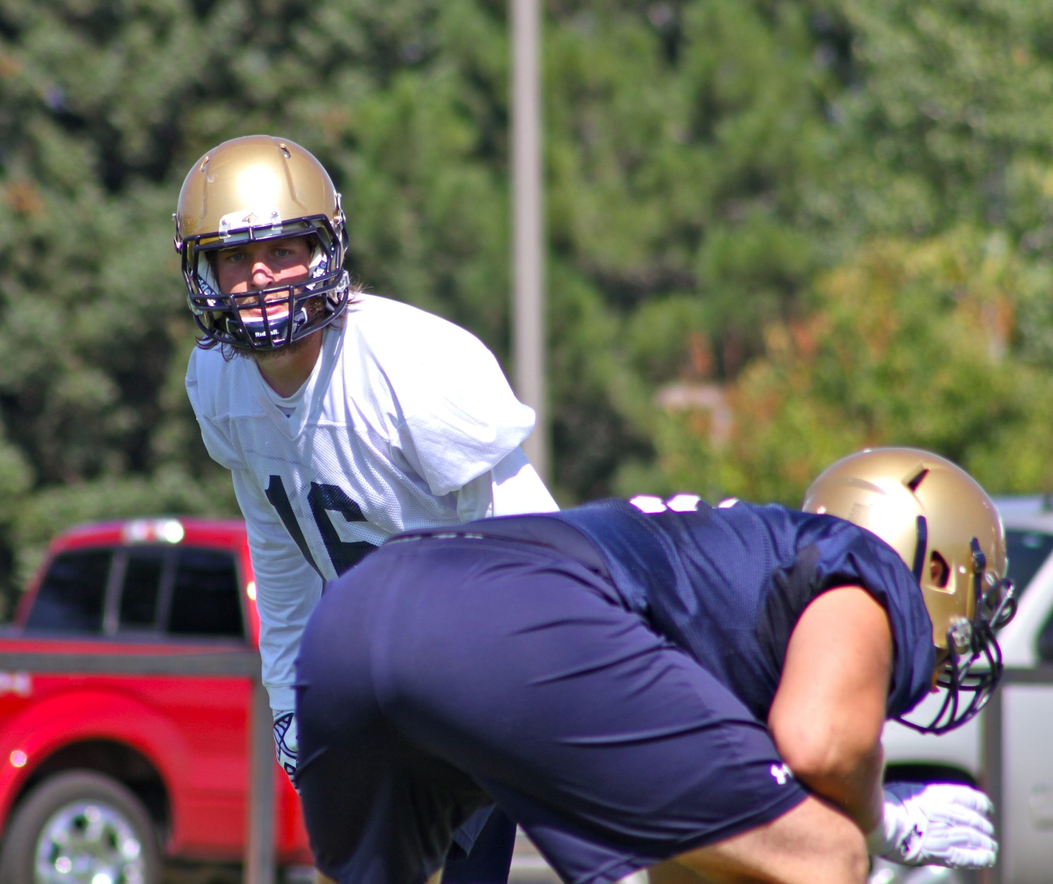 Zach Hutchins running copy“One of the reasons we changed the scheme was to try to adapt to our personnel,” said Beck, who has been integral in implementing multiple rotations with his defensive linemen to play in both even and odd-man fronts in Ioane’s scheme. “Zach was a guy who we had to adapt to figure out a little bit because he is so athletic. He was like that at Bishop Gorman (in Las Vegas). He played some linebacker, dropped. He’s got a knack for it. He can really run too, now. And he’s physical too. We kind of screwed him because we were going to move him to linebacker so we told him to lose a bunch of weight. But when we decided on this scheme, I decided I needed Hutch back.”
