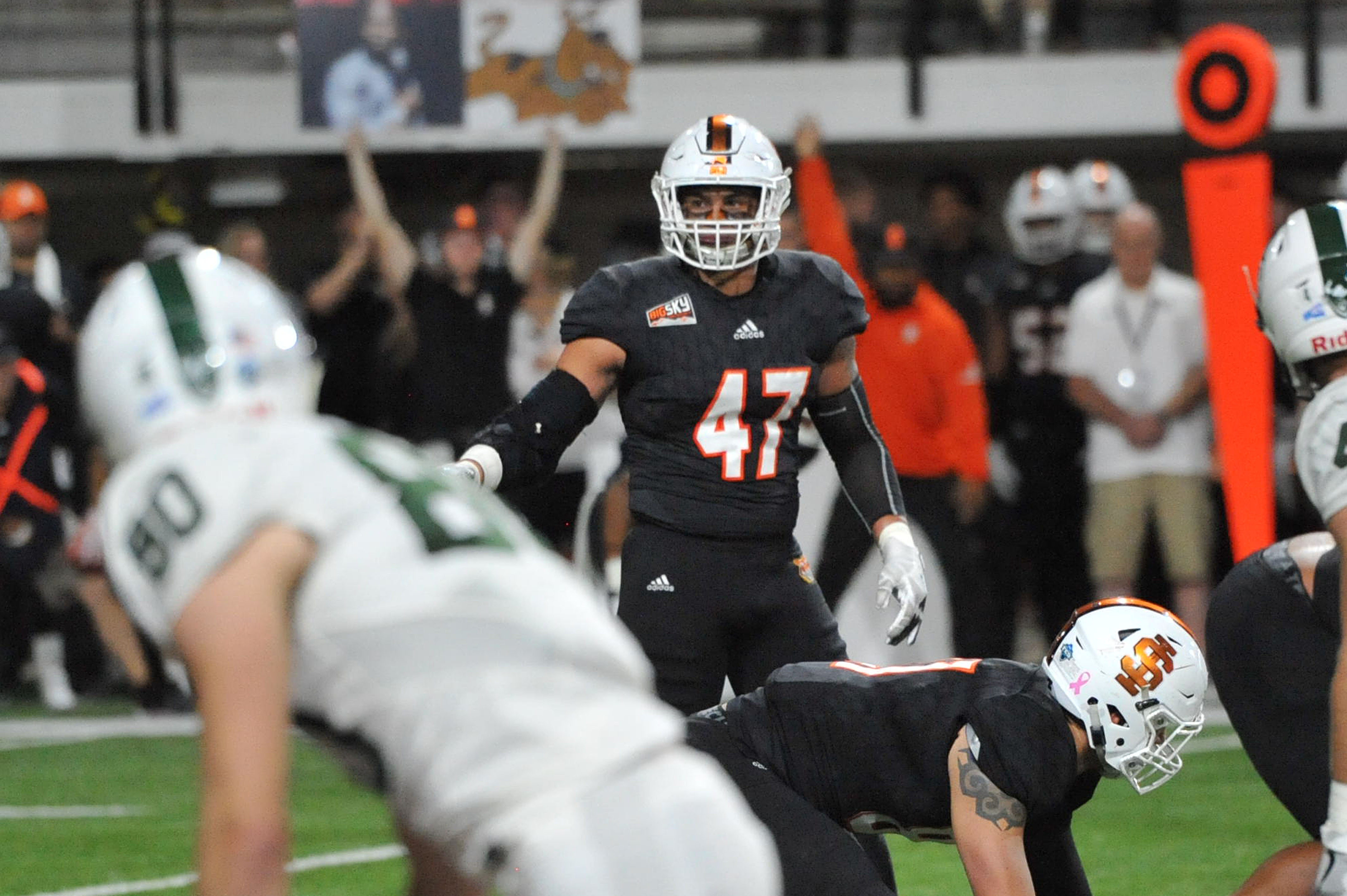 “Really good football player, man,” MSU second-year head coach Jeff Choate said. “He’s 6-1, 245, moves well, plays tackle to tackle, can play outside the box, good pass rusher, physical tackler, deserving candidate for the Buck Buchanan Award in my mind.”