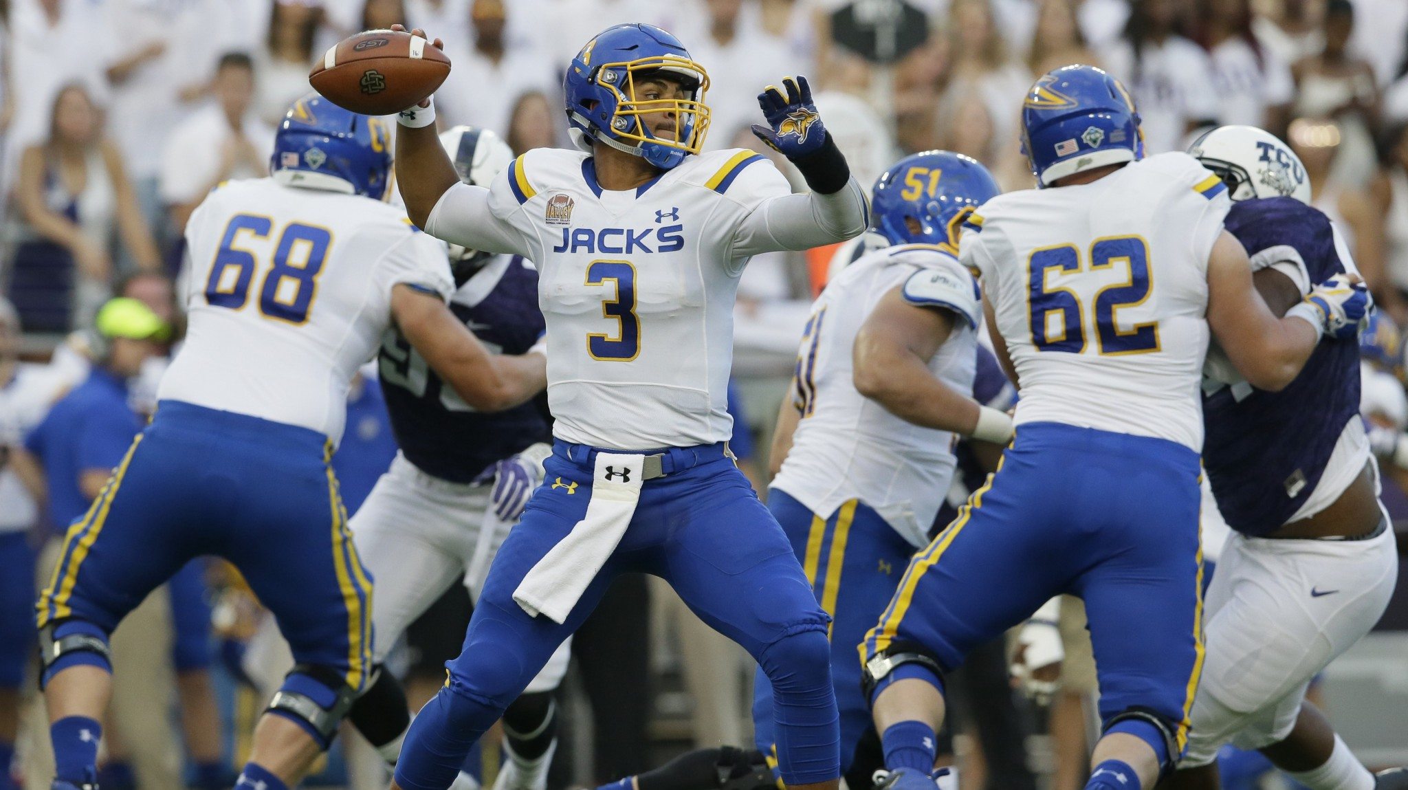 This year’s Jackrabbits team is winning a little differently than in many past seasons – with a high-powered passing attack. Behind sophomore quarterback Taryn Christian, wide receiver Jake Weineke and tight end Dallas Goedert, the offense ranks fifth nationally in passing yards per game (339.6). The Jackrabbits are fourth in scoring average (45) and 13th in total offensive yards per game (461.4).