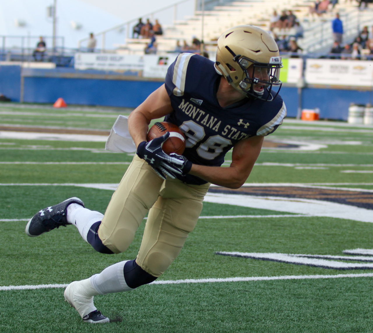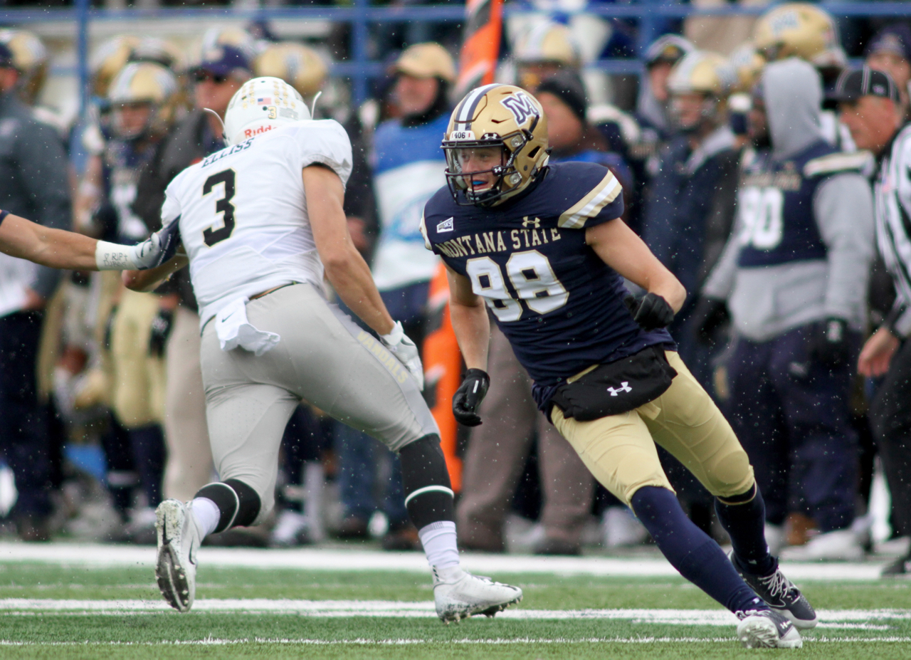Montana State fifth-year senior wide receiver John D’Agostino covers a kick against Idaho/ by Brooks Nuanez