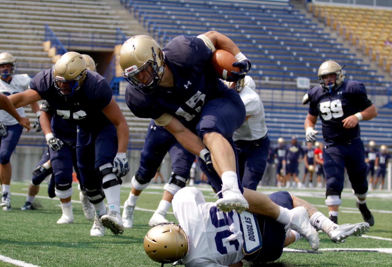 The players: Edward Vander (6-foot-1, 200-pound sophomore); Tyrel Burgess (5-8, 160-pound true freshman); Troy Andersen (6-3, 215-pound true freshman); Jake Roper (5-foot-11, 195-pound redshirt freshman); R.J. Fitzgerald (5-10, 215-pound true freshman); Logan Jones (5-9, 175-pound junior); Anthony Pegues (5-8, 180-pound redshirt freshman) and Noah James (6-1, 215-pound junior).