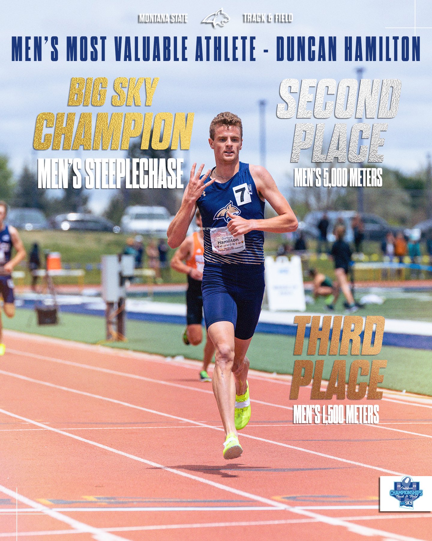 Montana State’s men’s and women’s teams each finished second at the Big Sky Conference Outdoor Track and Field Championship Saturday, and Bobcat senior Duncan Hamilton capped the Big Sky Conference portion of his brilliant career in fitting fashion by earning Most Valuable Men’s Athlete honors at his final league meet.