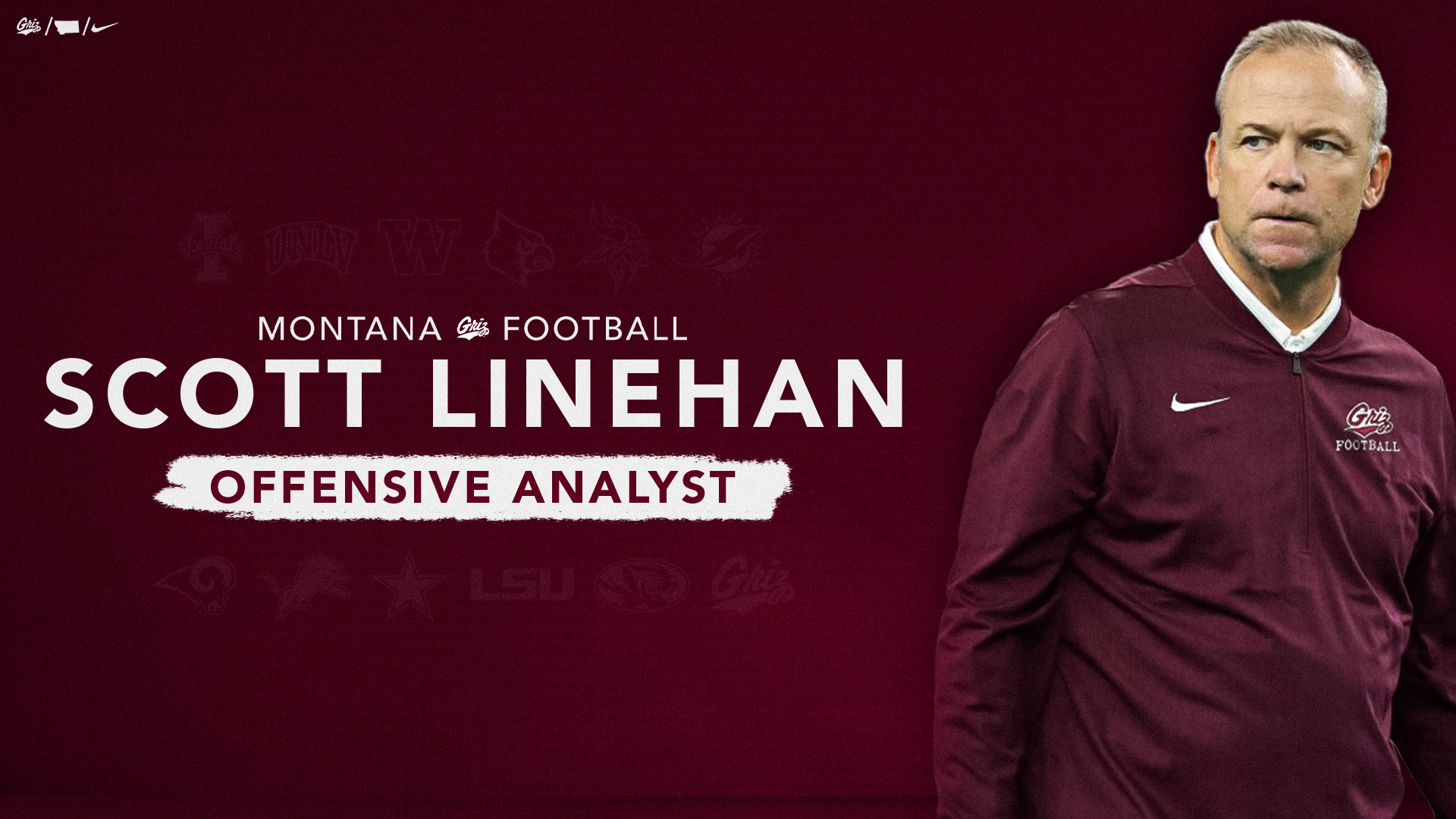 “I’ve got great respect for Coach Hauck and the tradition of the Grizzly football program he’s built is well known. I’m thankful for the opportunity to help continue that success as an analyst. It’s also a special opportunity to work with my son Mike,” said Linehan.
