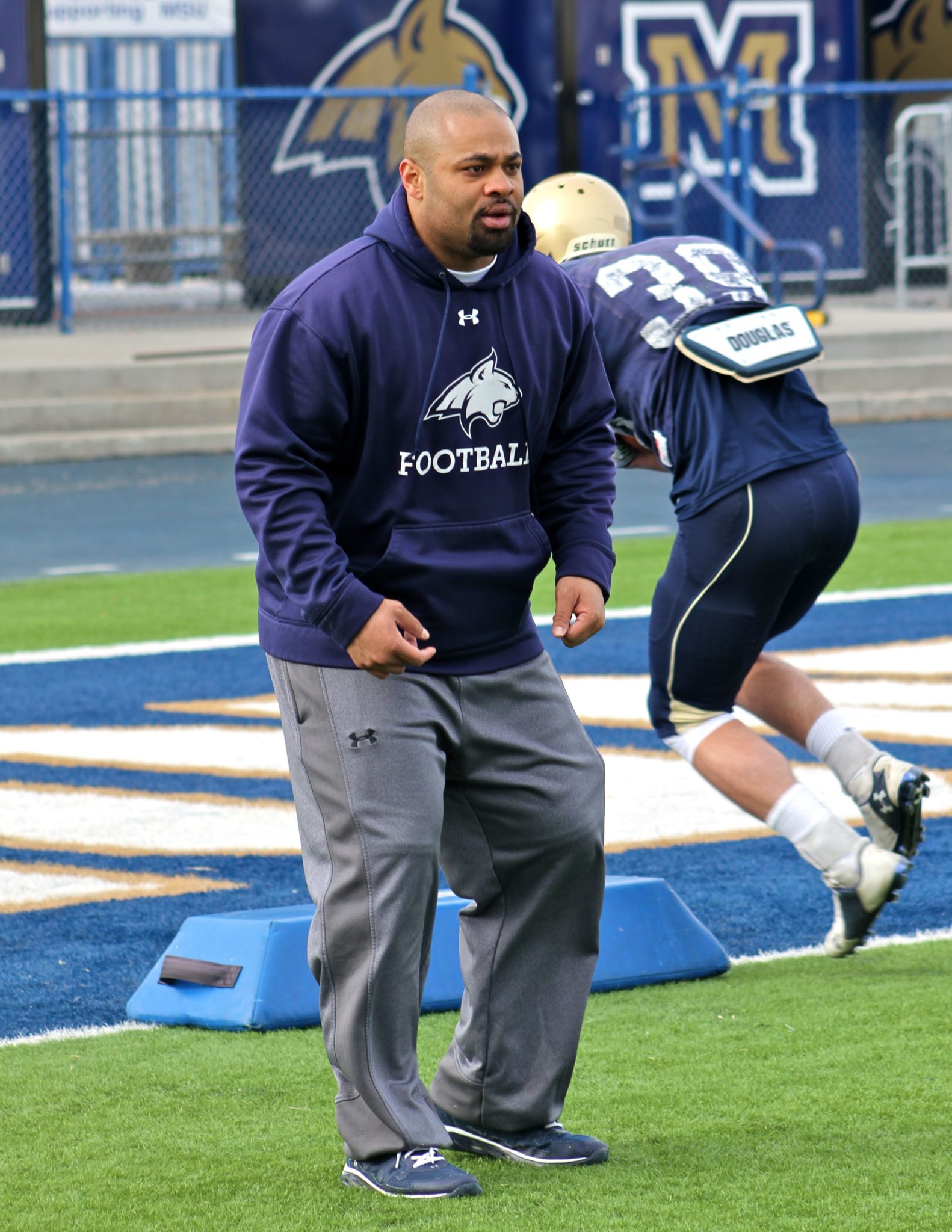 As of February, Pitre has been in Bozeman for one full year, his first full year as a full-time coach and going on his second full year as a full-time father. A week before spring drills began, Pitre sat down with Bobcat Beat to discuss his group, his first year out on the recruiting trail, the brutality of playing running back at a high level and what’s next for his good friend former NFL star Maurice Jones-Drew. For full audio of this interview, click here.