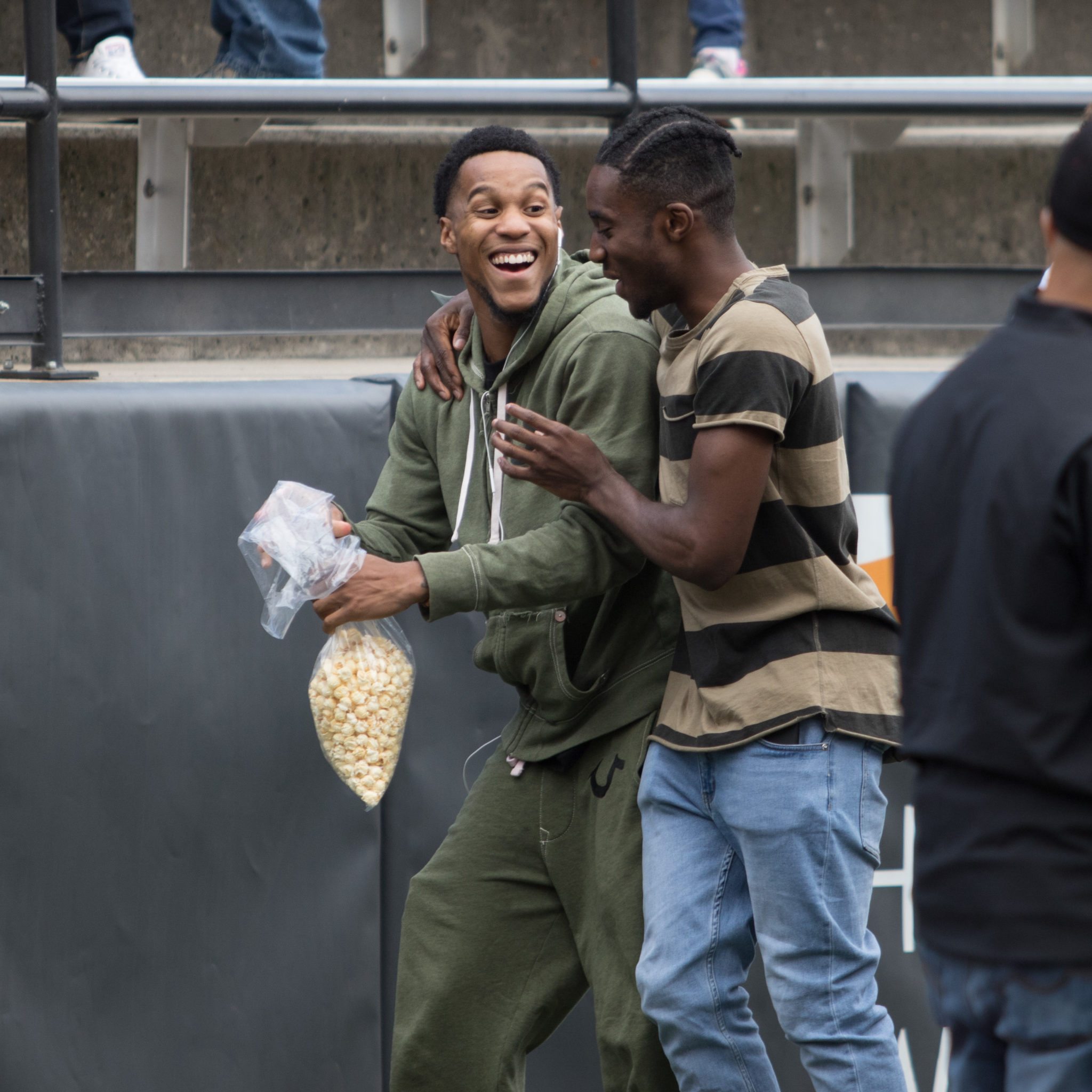 Montana seniors Ahmaad Rorie and Michael Oguine at a 2017 Griz football game/ by Brooks Nuanez