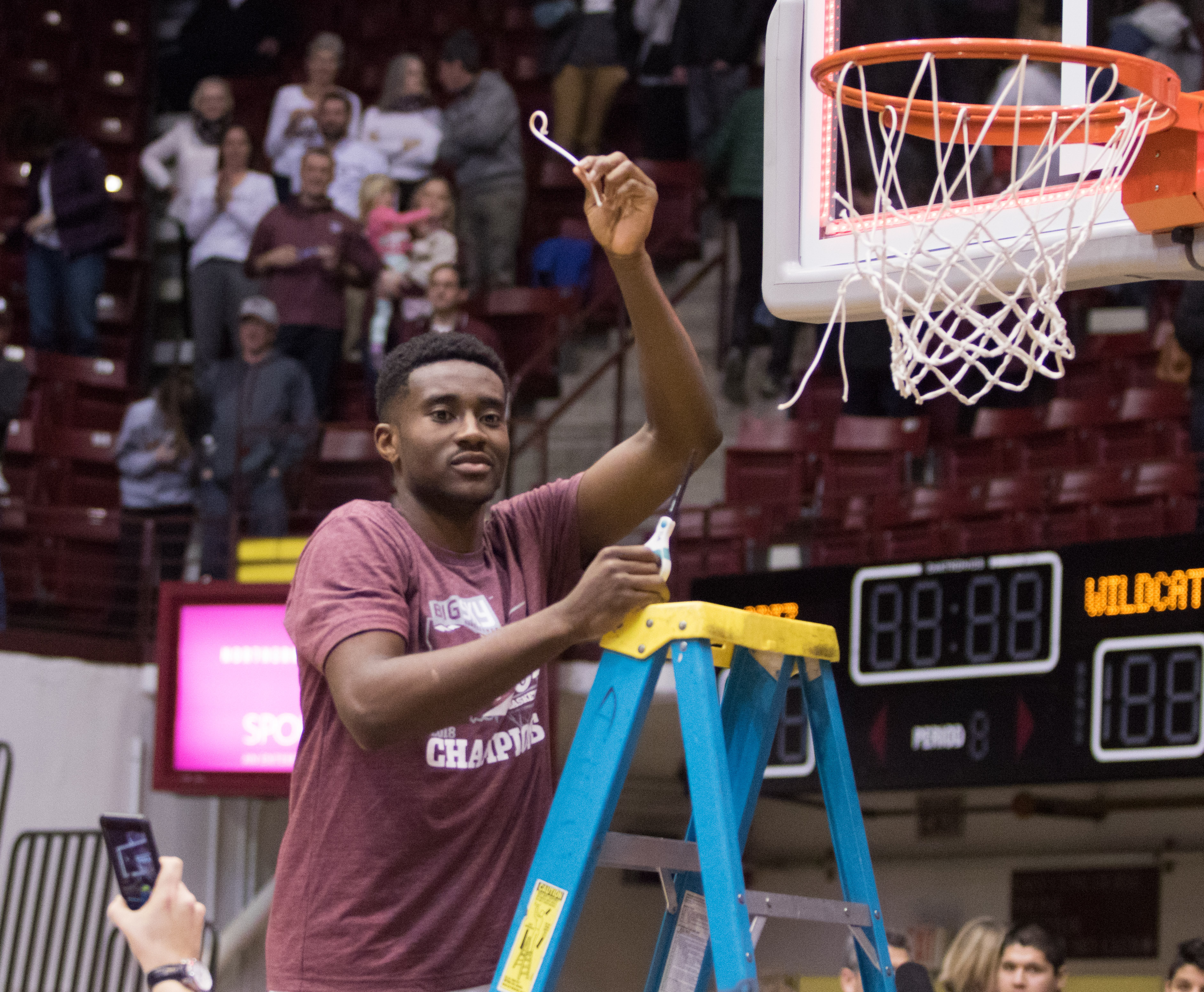 Montana senior Michael Oguine after UM won the Big Sky Tournament last season/ by Brooks Nuanez