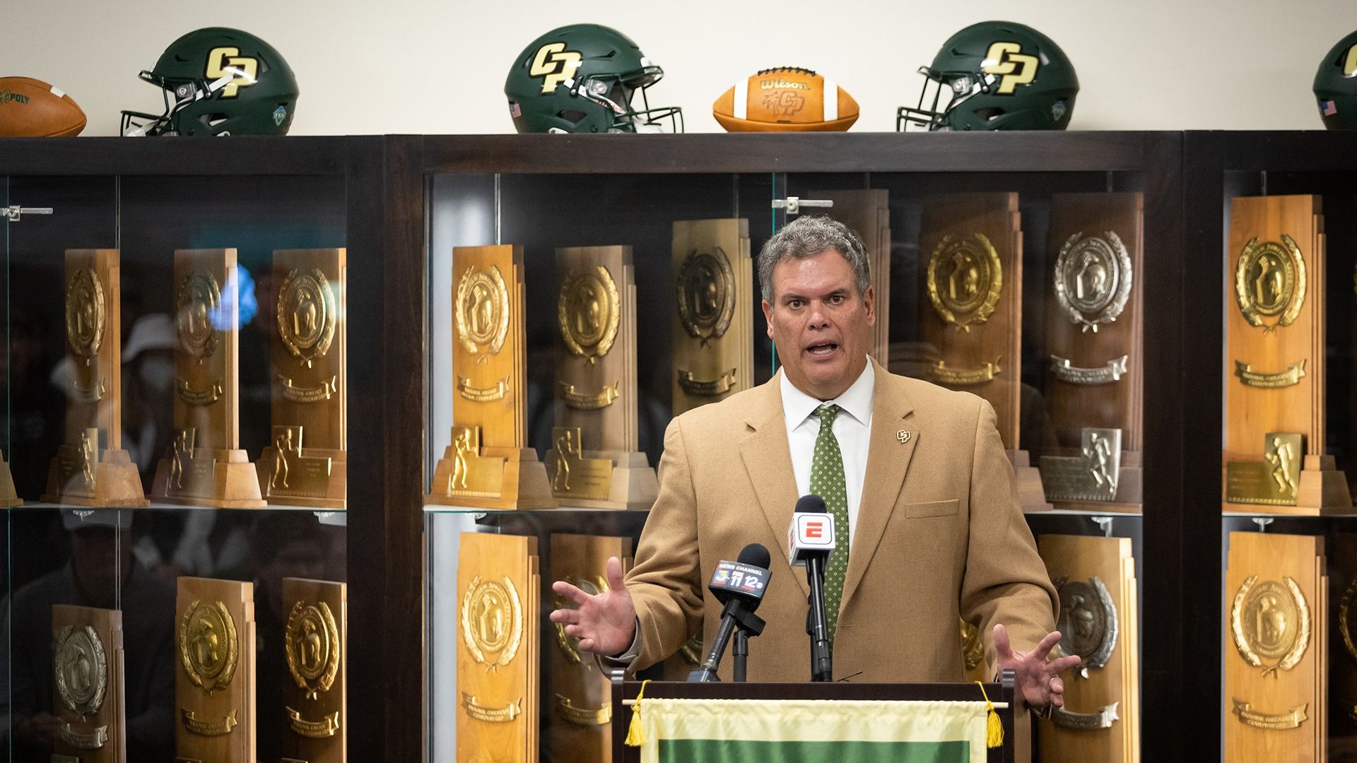 Cal Poly president Jeffrey D. Armstrong and Director of Athletics Don Oberhelman announced Wulff’s new role Tuesday during a press conference in the lobby of Mott Athletics Center.