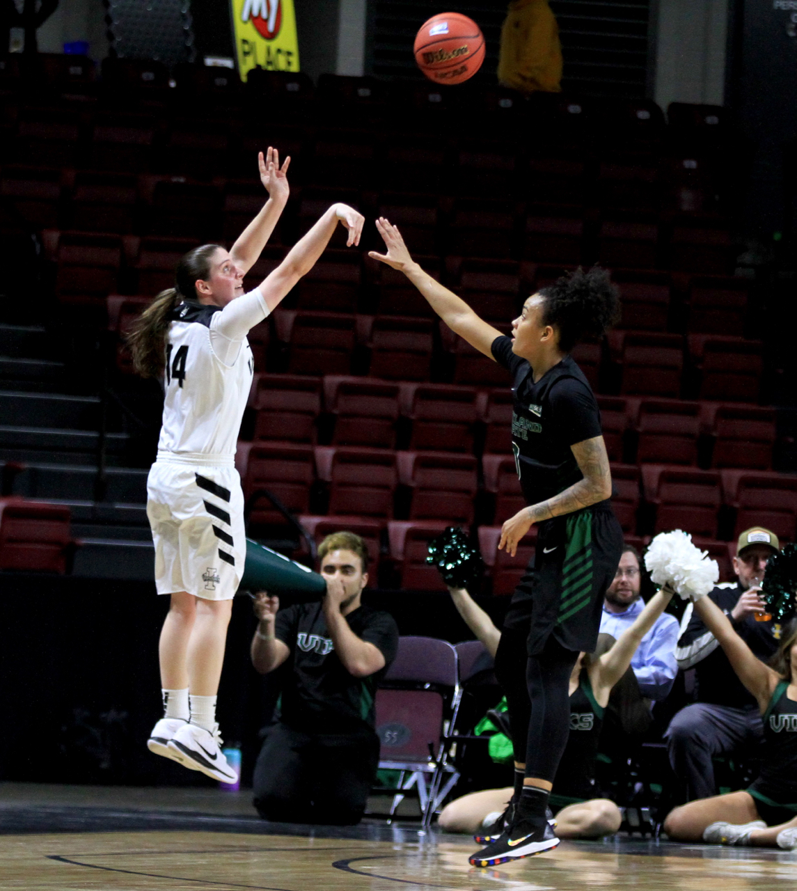 All eight of Jimenez’s free throws came in the final three minutes as the Vikings negated any potential comeback by the regular-season league champions. Her fourth 3-pointer gave PSU a 63-51 lead. The advantage never dipped below double digits again.