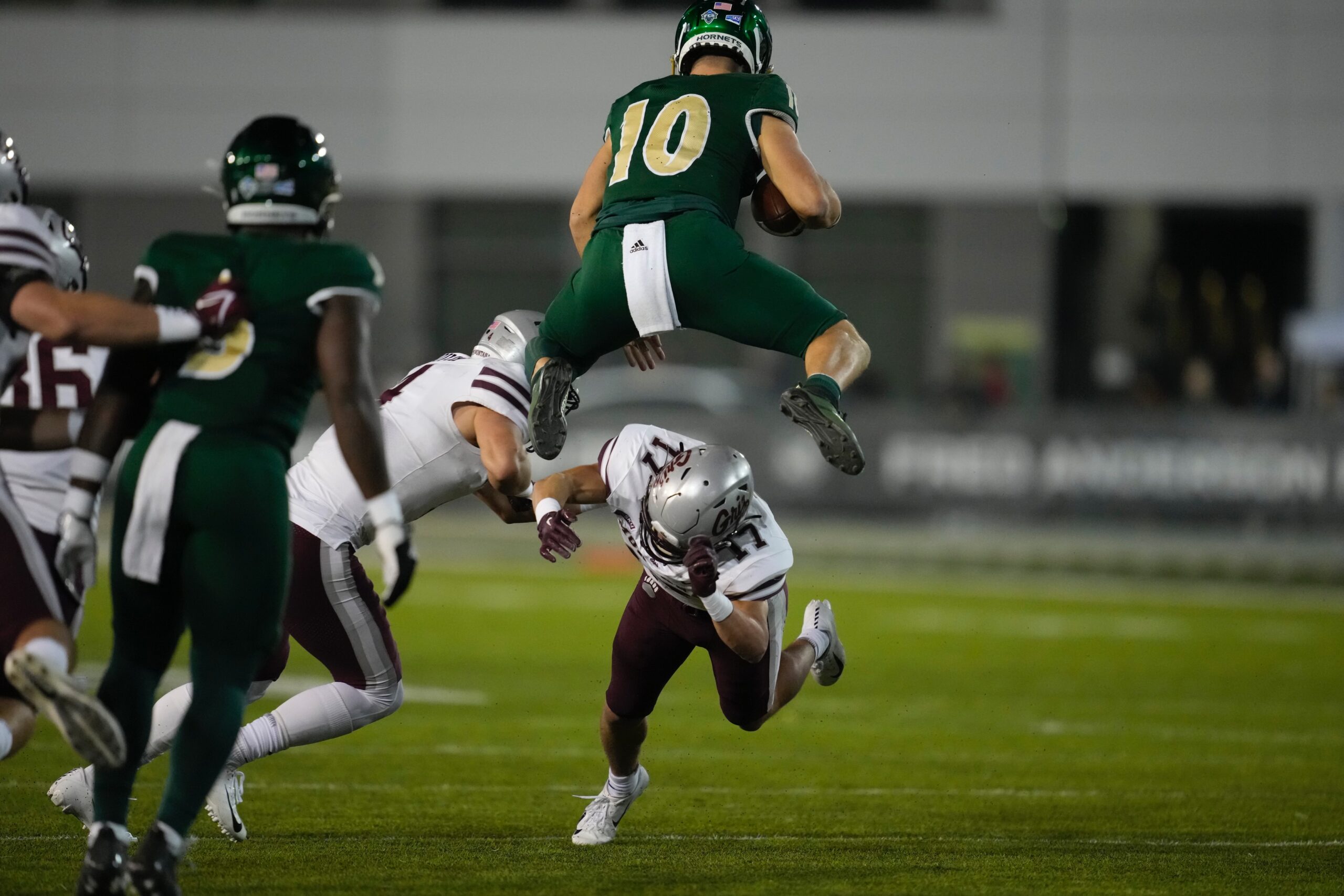 Montana secured a time of possession advantage for the game before the fourth quarter was two minutes old. The Griz rushed for exactly 200 yards. Despite having to navigate a Top 10 matchup without their super senior quarterback, UM still led for the first 56 minutes, 21 seconds of the game against an undefeated Hornets team that had never trailed this season entering Saturday night’s nationally televised clash.