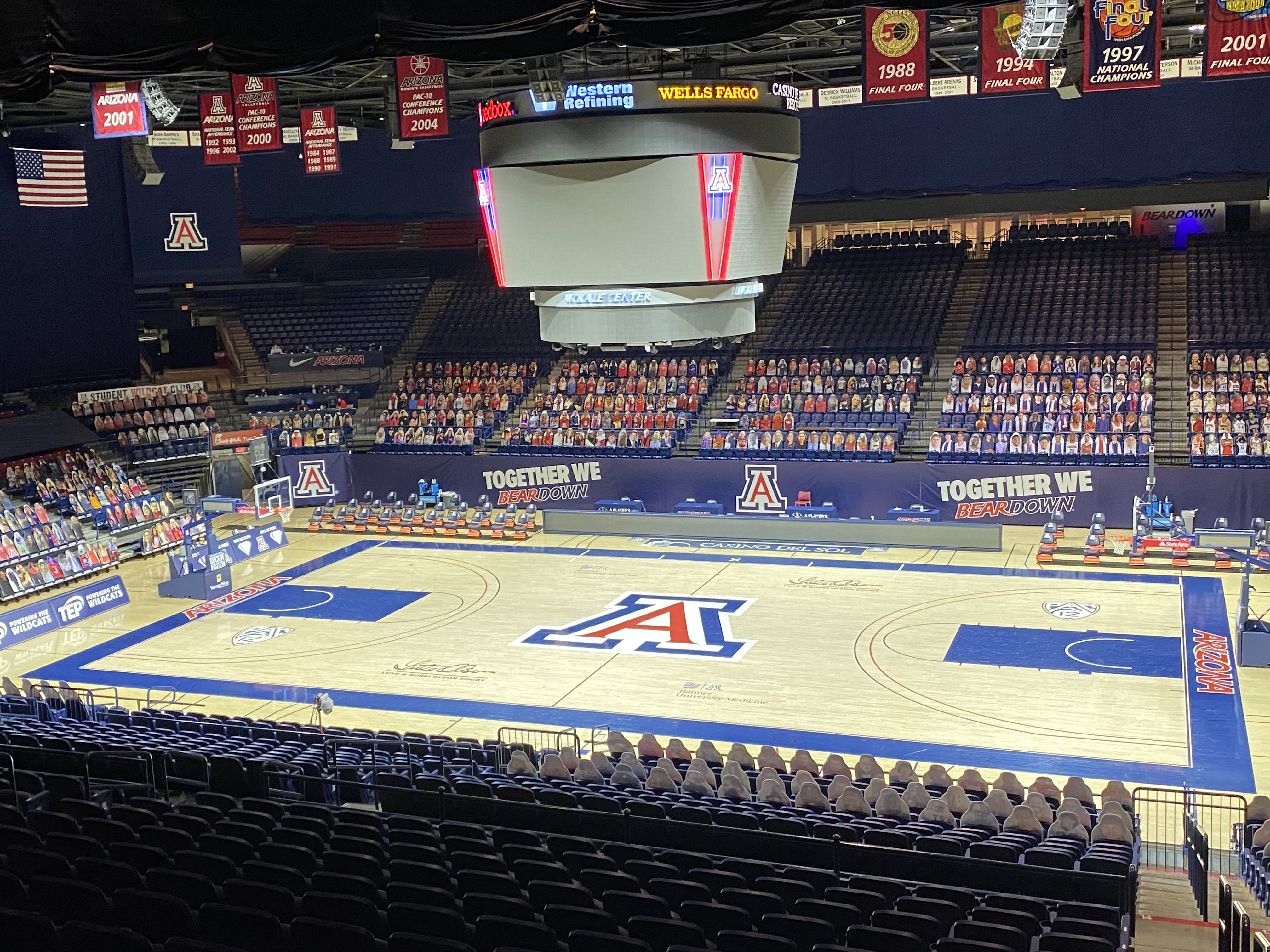 Montana head coach Travis DeCuire was not able to conduct a post-game interview with Voice of the Griz Riley Corcoran because of the inaccessibility via the concourse at the McKale Center.