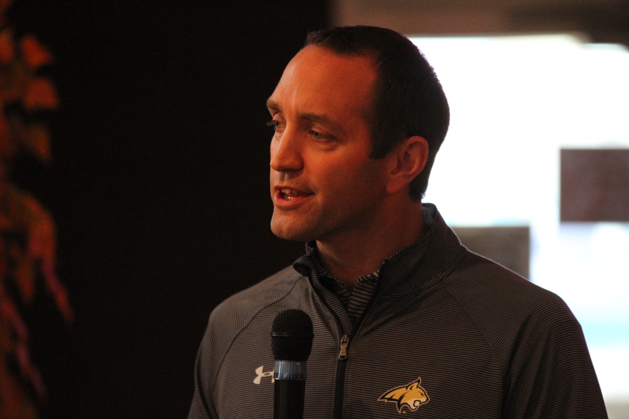 During Costello’s address to the sizeable crowd, he praises the women’s basketball team for their run to the first NCAA Tournament bid in 25 years. He says he wants a similar experience for every student-athlete at Montana State.