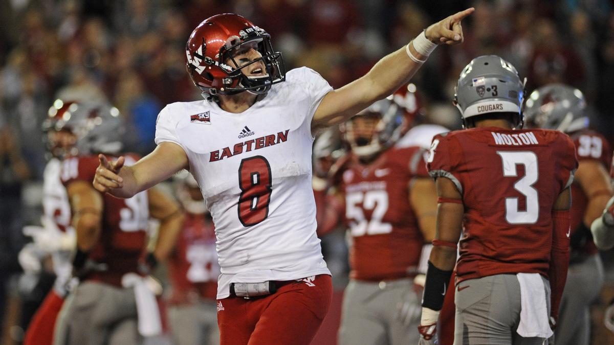 But Gubrud’s mobility and explosive ability helped him win the job. In his first career start, Gubrud threw for 474 yards and five touchdowns while also ripping off a game-sealing 30-yard touchdown run in Eastern’s 45-42 upset of Pac 12 Washington State.