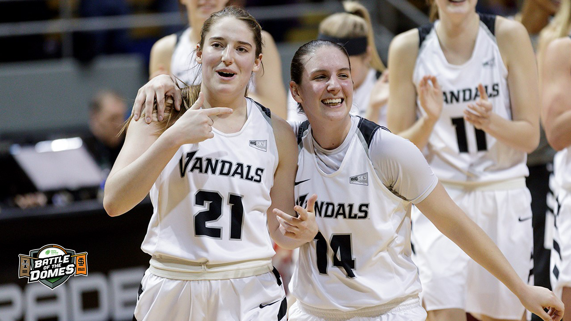 Idaho senior guard MiKayla Ferenz (21) and Taylor Pierce (14)/by Idaho Vandal Athletics